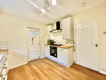 - Sleek white kitchen with great storage, generous worktops, with integrated, dishwasher, fridge-freezer, electric oven & 5-burner gas hob, ideal for easy everyday cooking.