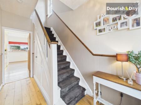 Externally, the property sits on an excellent plot. To the front there is an extensive driveway providing ample off-road parking, while the impressive rear garden offers plenty of space for the whole family to enjoy. The garden features a paved seating area, a generous lawn with well-stocked borders, and the added benefit of a garage and workshop.