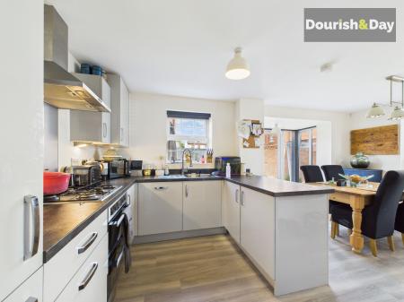 Step inside and you’ll find a home that’s as practical as it is inviting. The hallway leads the way to a bright living room, perfect for movie nights, games with the kids, or simply putting your feet up. Across the hall, the kitchen/dining room is the heart of the home, fitted with sleek modern units, integrated appliances and plenty of worktop space for your inner chef. Throw open the double doors and you’ve got instant access to the garden. There’s also a guest WC and a utility room to keep things running smoothly.