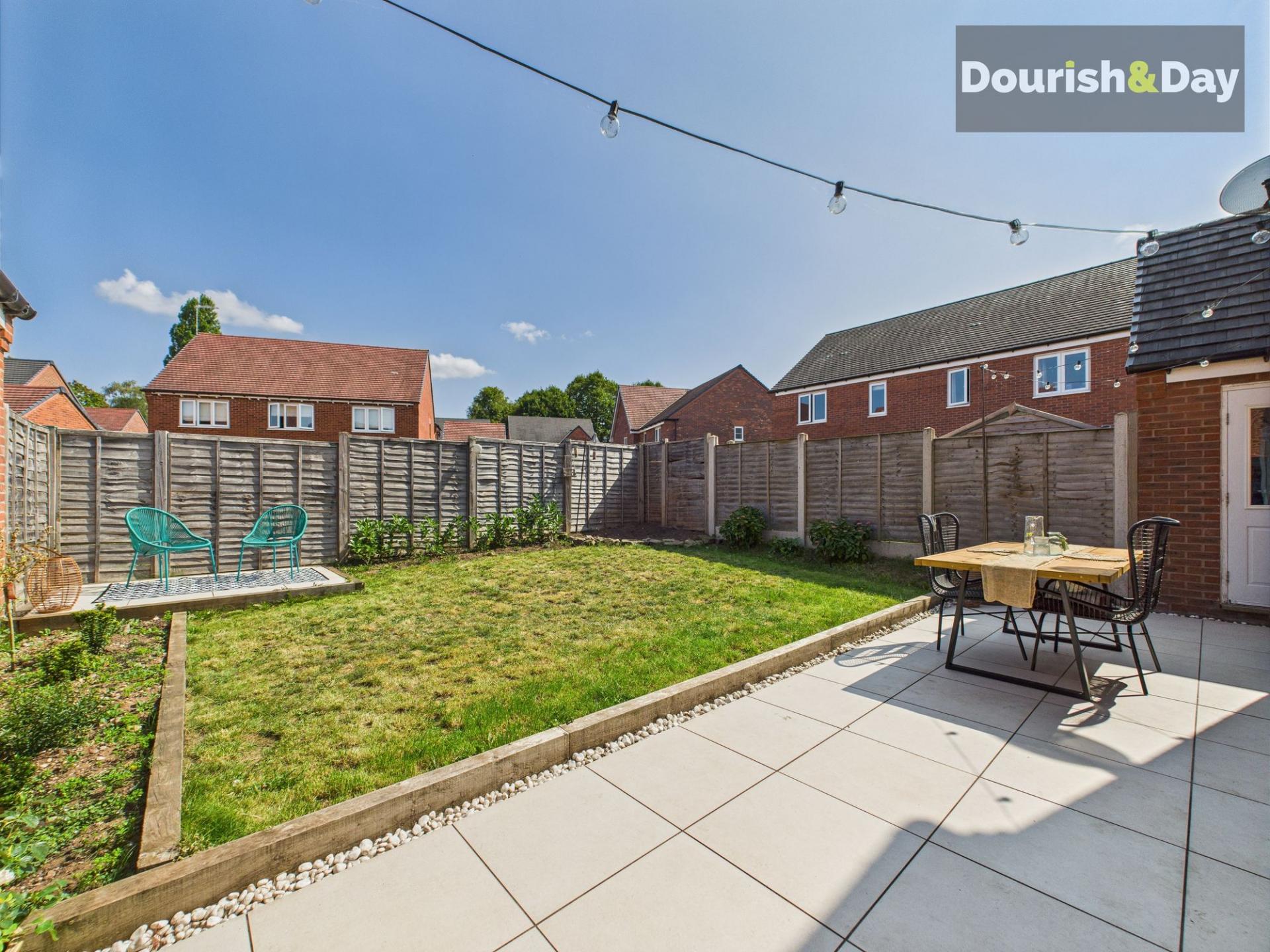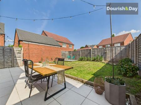 Outside, a neat front lawn and driveway give access to the garage, while the rear garden is fully enclosed and well-kept, with a paved seating area and lawn – a safe and sunny spot for children to play or for grown-ups to unwind.