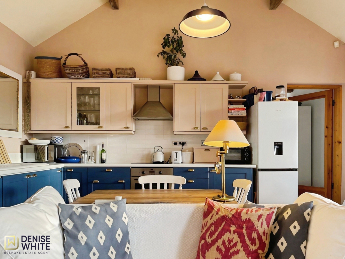 - Stylish open-plan kitchen, dining & living area with vaulted ceiling and exposed beams