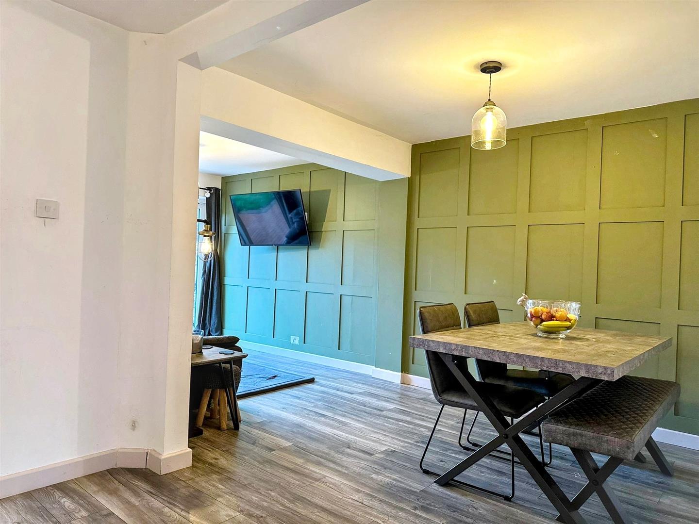 - Spacious Open-Plan Living Dining Kitchen With Bespoke Panelling And Stylish Kitchen