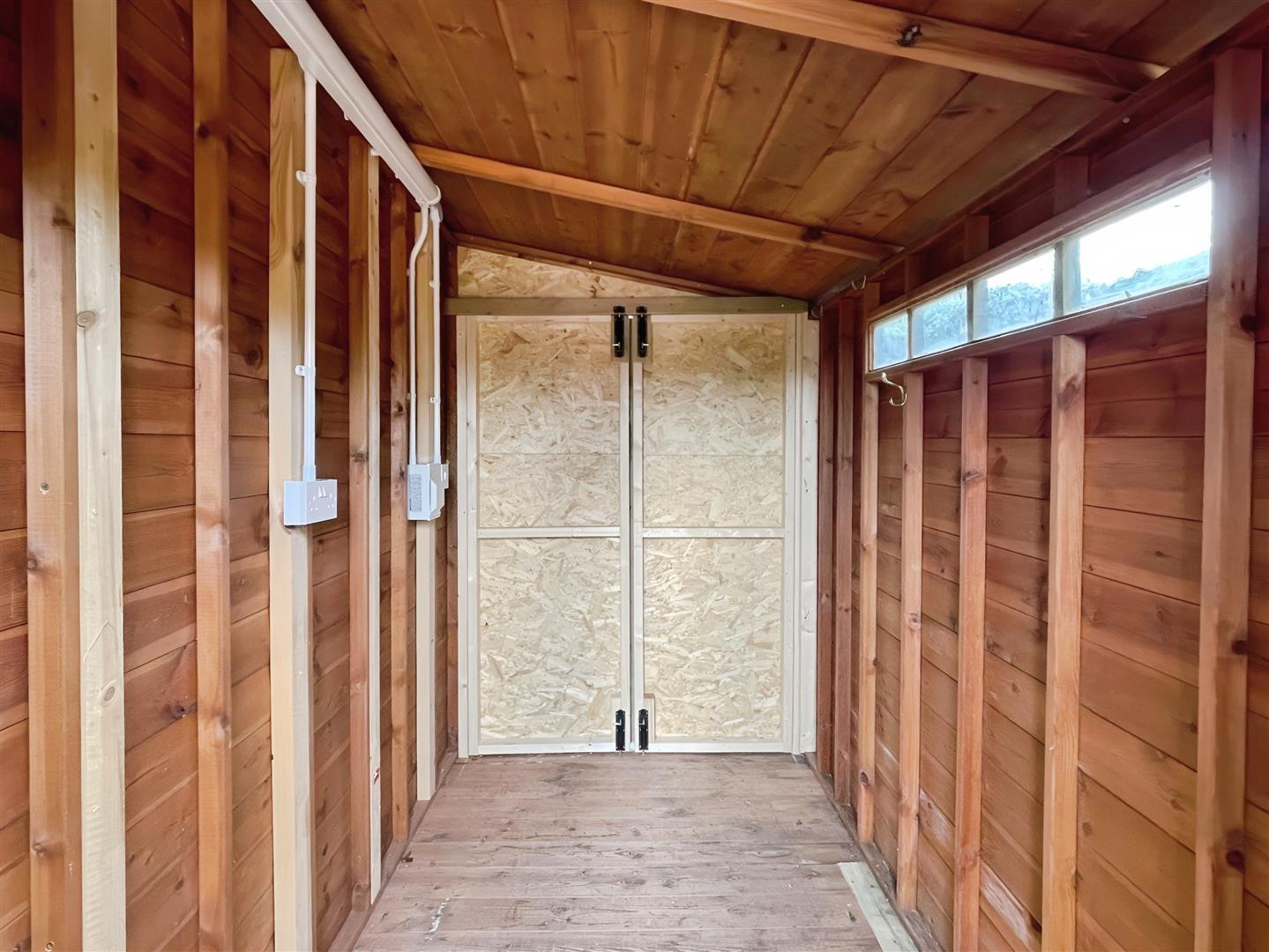 Outside, a paved driveway provides ample off-road parking. A free standing shed offers sheltered side access, leading to a private enclosed garden with mature hedgerow borders. A paved patio area wraps around the rear of the home, perfect for outdoor dining or relaxing, and a further shed provides additional storage.