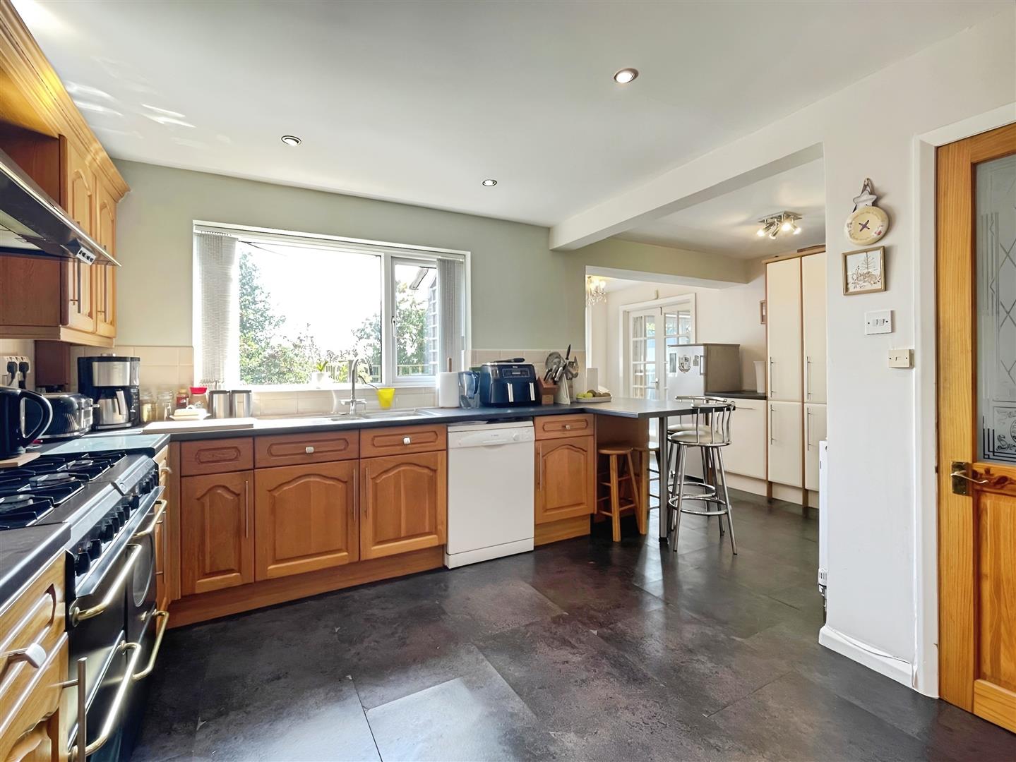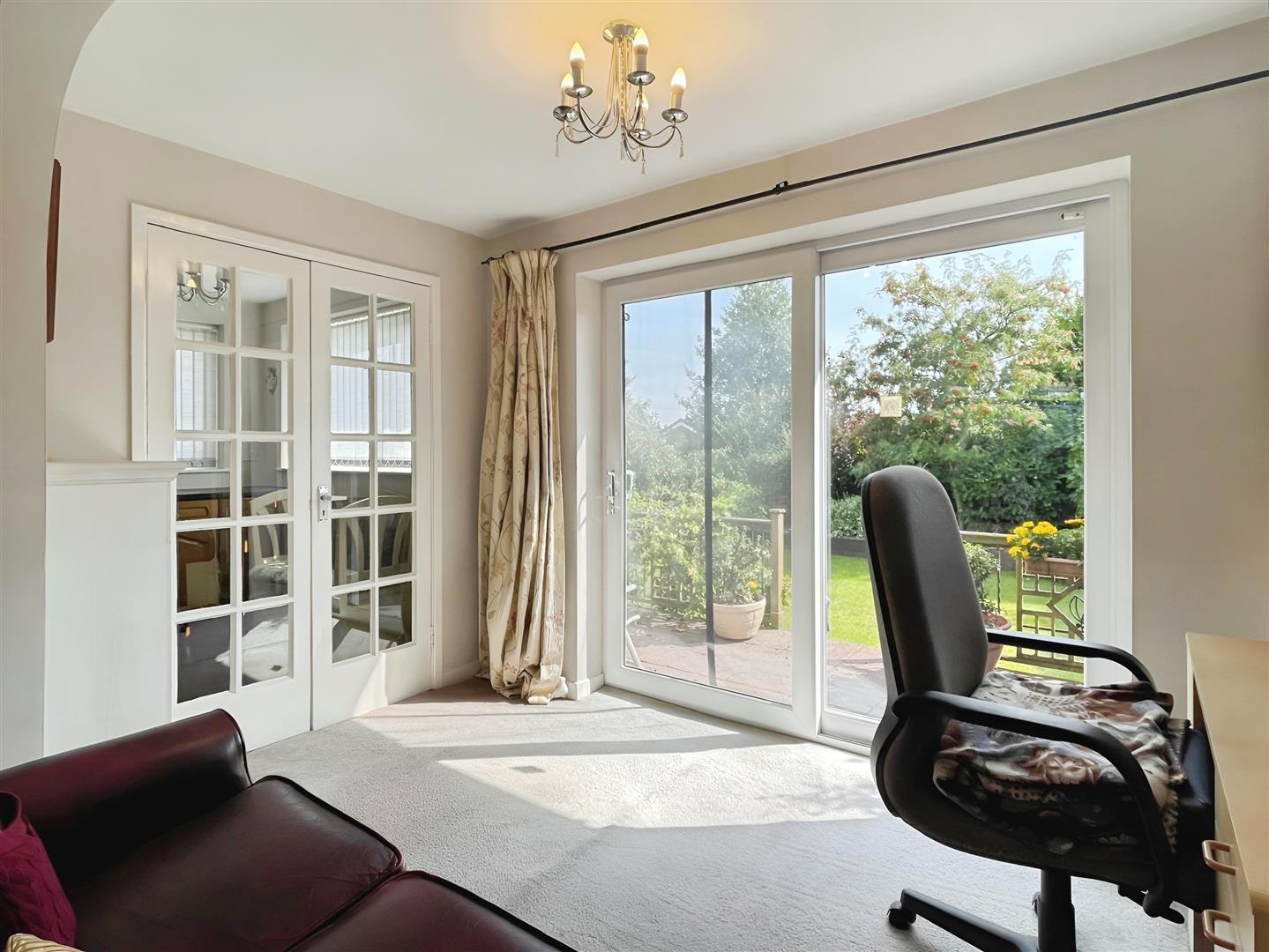 To the rear, the breakfast kitchen is fitted with a range of units and enjoys views over the garden. Double doors connect this space to the living room, enhancing the flow of the ground floor. A separate dining room offers further versatility, whether as a formal dining area, playroom, or home office. A useful utility room provides access to the garden, while a ground floor bathroom with jacuzzi bath adds to the home's practicality.