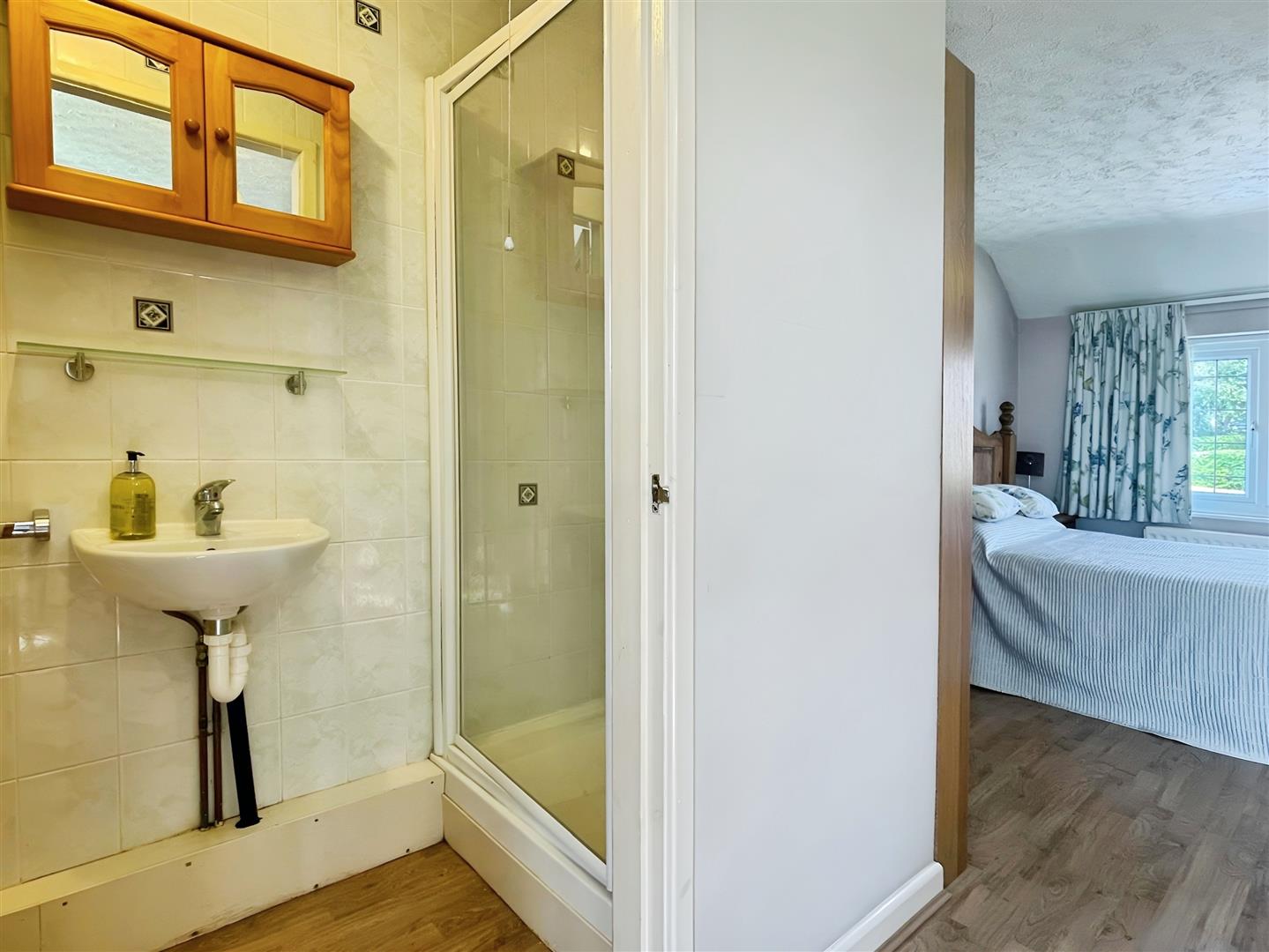 Ensuite - 0.91 x 2.33 (2'11" x 7'7" ) - Continue wood effect laminate flooring. Low-level WC. Tiled walls. Wall mounted wash hand basin. Shower cubicle with electric shower. Extractor fan. Ceiling light.