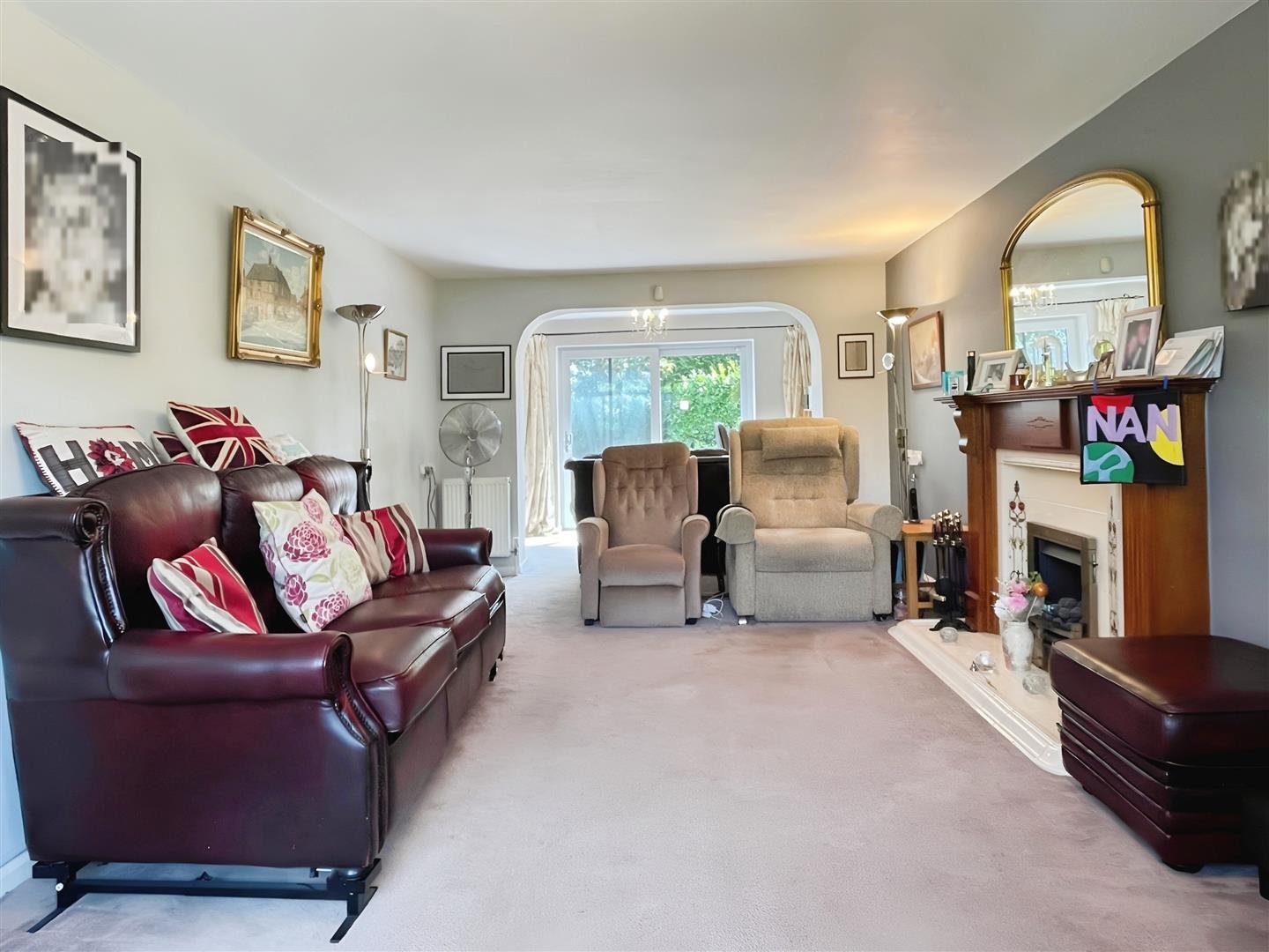Upon entering, you are welcomed by a spacious entrance hall with stairs rising to a galleried landing, setting the tone for the scale of the home. The large living room spans the full depth of the property and benefits from a bay-style window to the front and double doors leading out to the rear garden-creating a light-filled, sociable space ideal for relaxing or entertaining year-round.