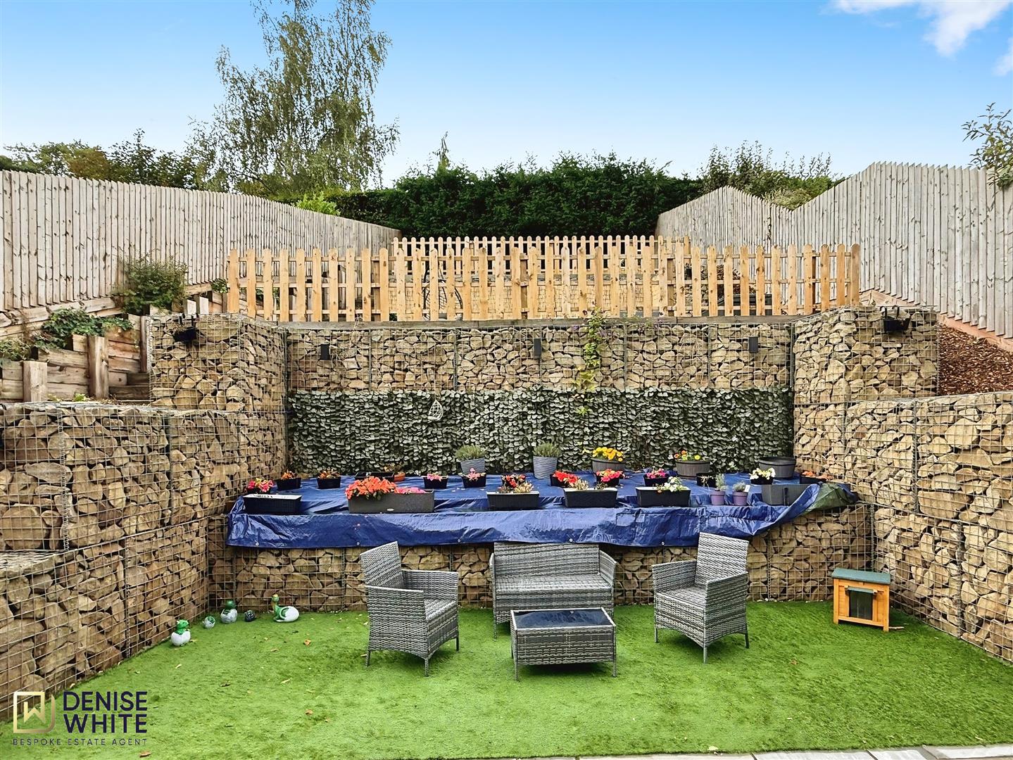 Outside - This beautifully landscaped, three-tiered garden is designed to maximise both space and functionality, offering the perfect blend of relaxation, entertaining, and outdoor living. At ground Level there low-maintenance astro-turfed lawn, ideal for children's play or pets, complemented by a neat flower bed adding a touch of colour and charm. Steps lead from here up to a stylish elevated patio area, perfect for outdoor dining, summer barbecues, or simply relaxing with friends and family. The stairs continue on to the top tier where you will find a second astro-turfed lawn, enjoying elevated views and plenty of space, making it the perfect spot for recreation, a play area, or additional seating. This tiered design ensures every inch of the garden is both practical and inviting, providing versatile spaces to suit the whole family.