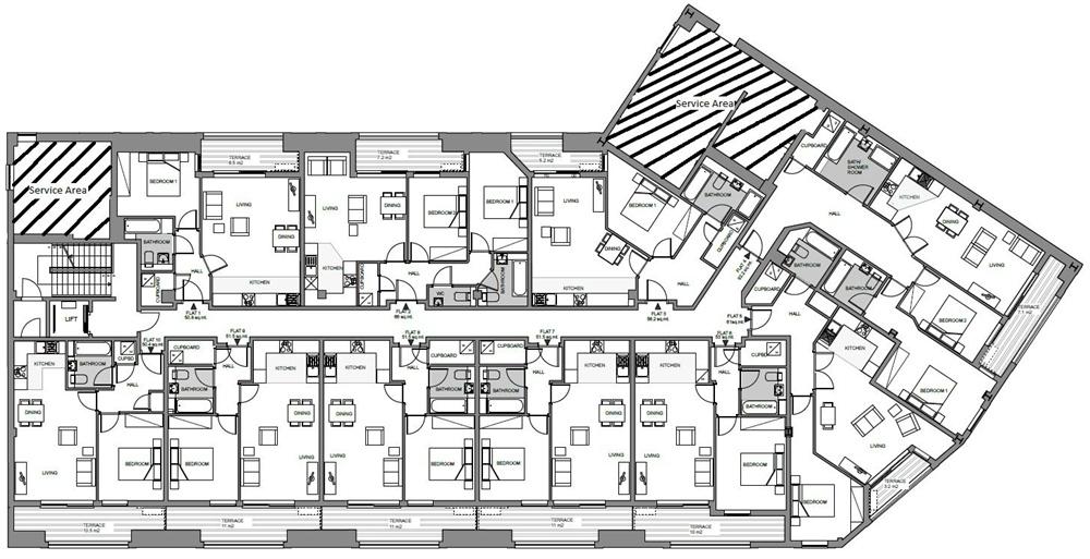 o Very large private balconies with silver, grey and black Eco Deck floor coverings per apartment