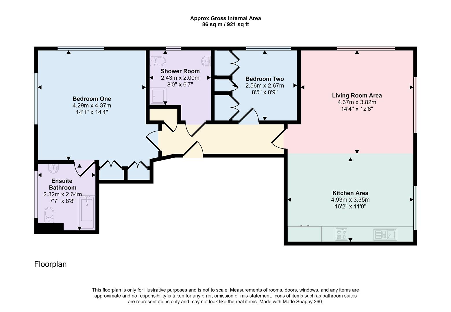 Shuttered obscure arch window to side. Large fully tiled shower cubicle. White floating wash hand basin with chrome mixer tap. Low flush WC with economy flush. Heated chrome towel rail. Shaver point and extractor fan. Ceramic tiled floor.