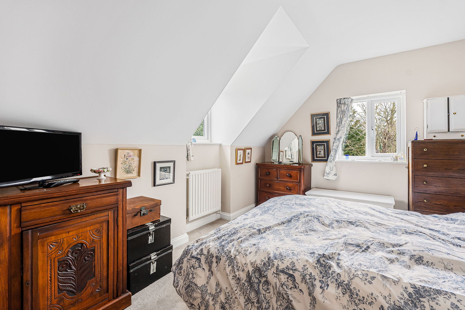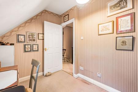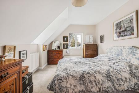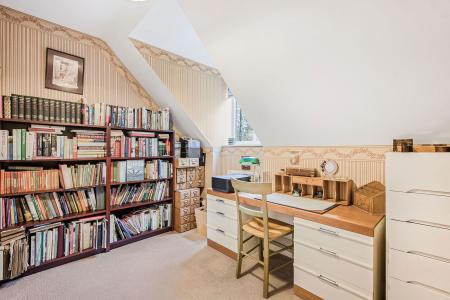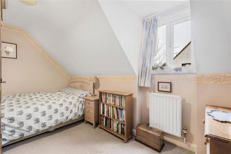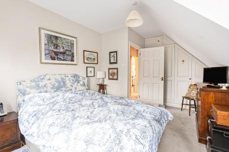 (Max) Dual aspect double glazed windows to side and rear overlooking the garden and communal gardens beyond. Radiator. Range of bespoke wardrobe cupboards to one wall.