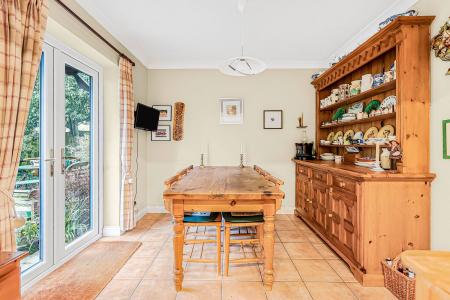 With ample space for a dining table and chairs there are wide double glazed doors to the garden. Tiled floor. Radiator.