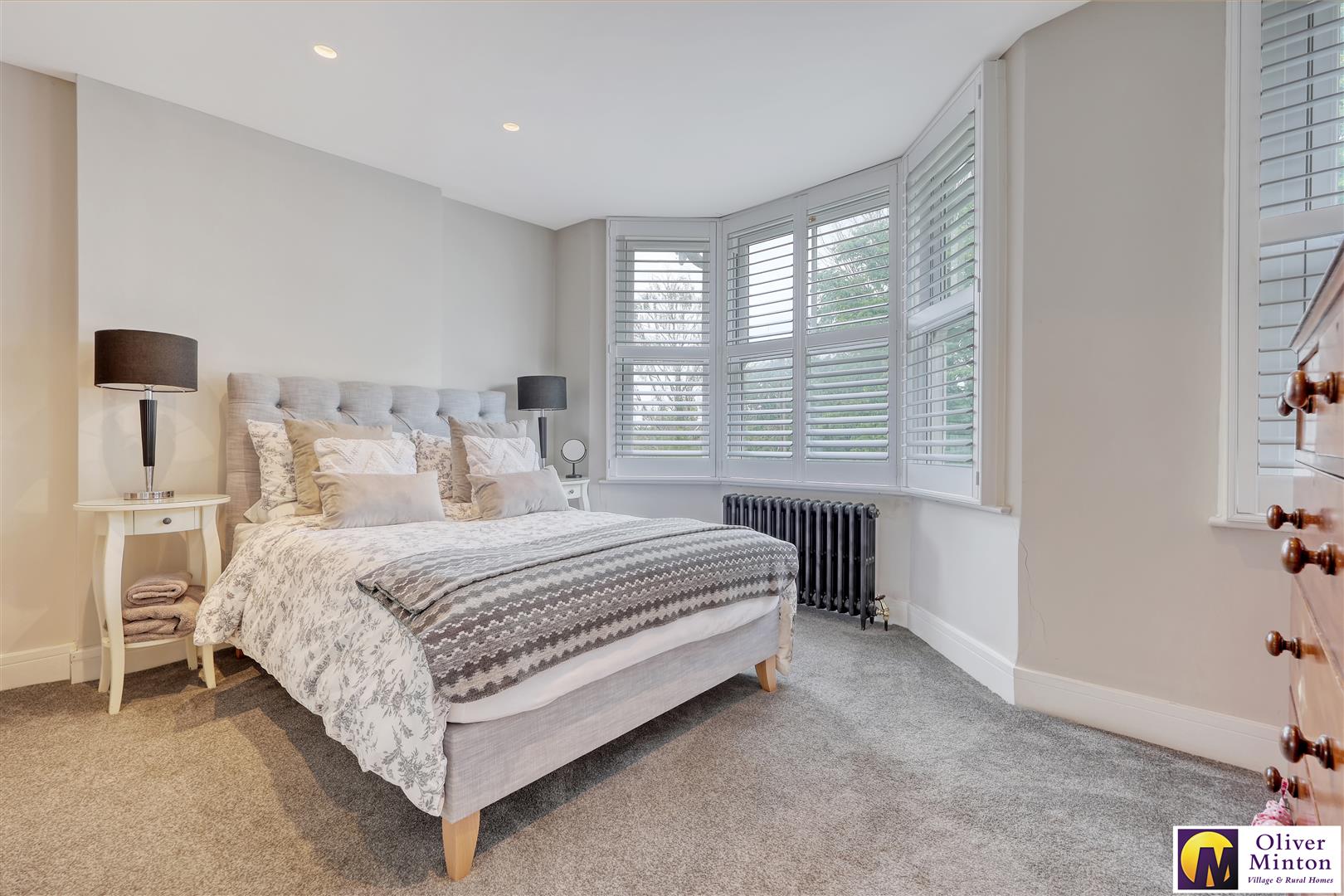 Bedroom Two - 3.99m x 3.68m into bay (13'1 x 12'1 into bay) - uPVC double glazed sash window and bay window to front with fitted shutter blinds. Inset ceiling lights. Antique style radiator. Inset ceiling lights. Door to: