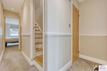 Staircase to first floor with understairs storage cupboard. Underfloor heating.