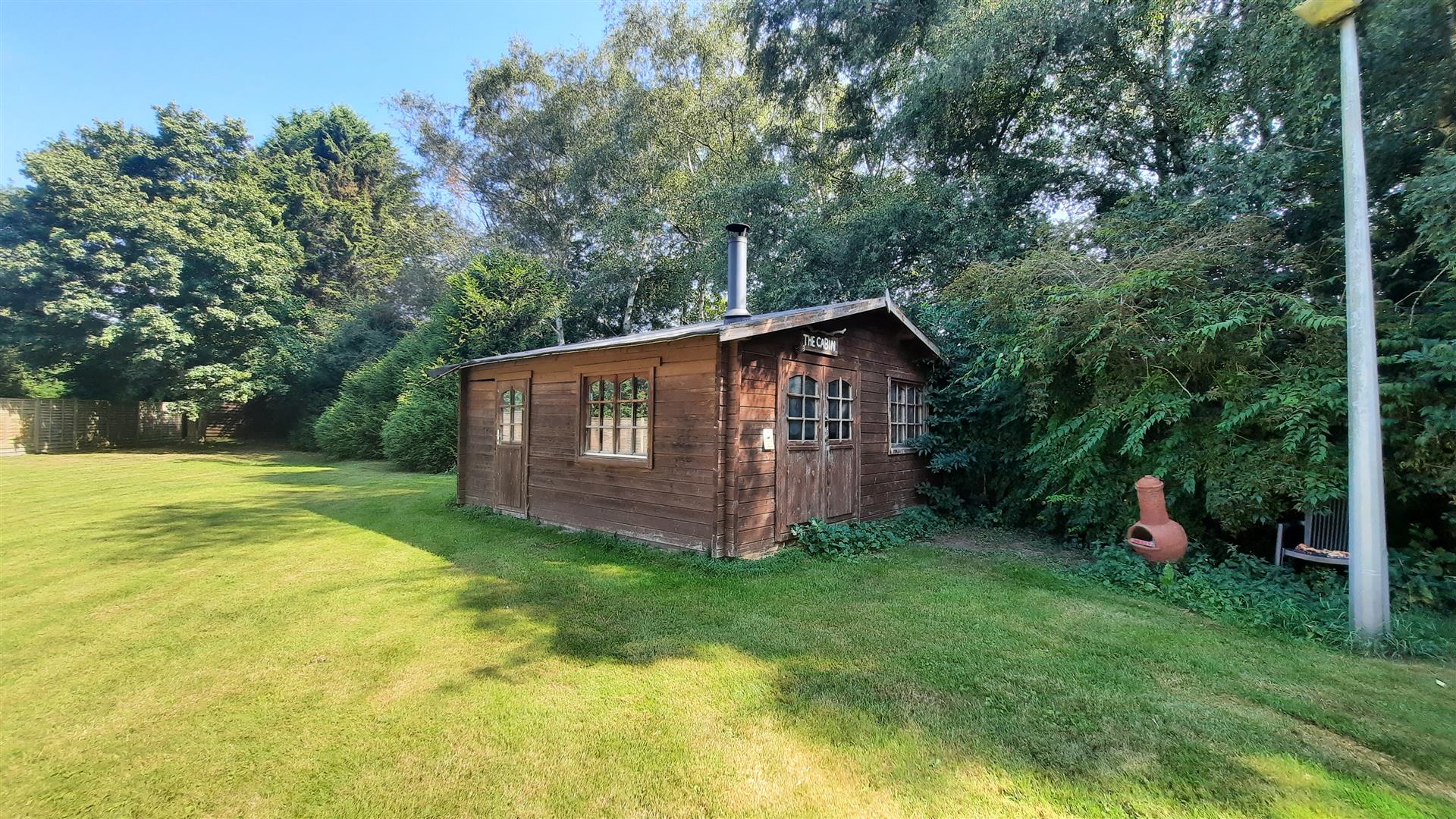 Timber Cabin - 5.30m x 3.40m and 5.30m x 2.02m (17'4" x 11'1" and - Pitched roof. Part subdivided into two areas. Wood burning stove. windows overlooking the garden.