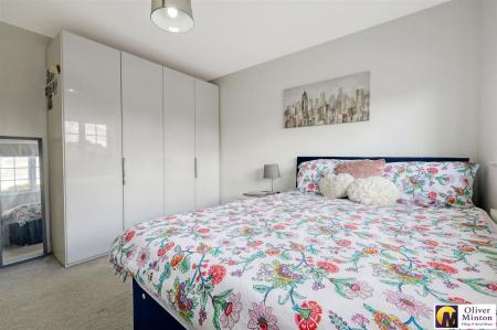 uPVC double glazed window to front. Radiator. Range of white double wardrobes.
