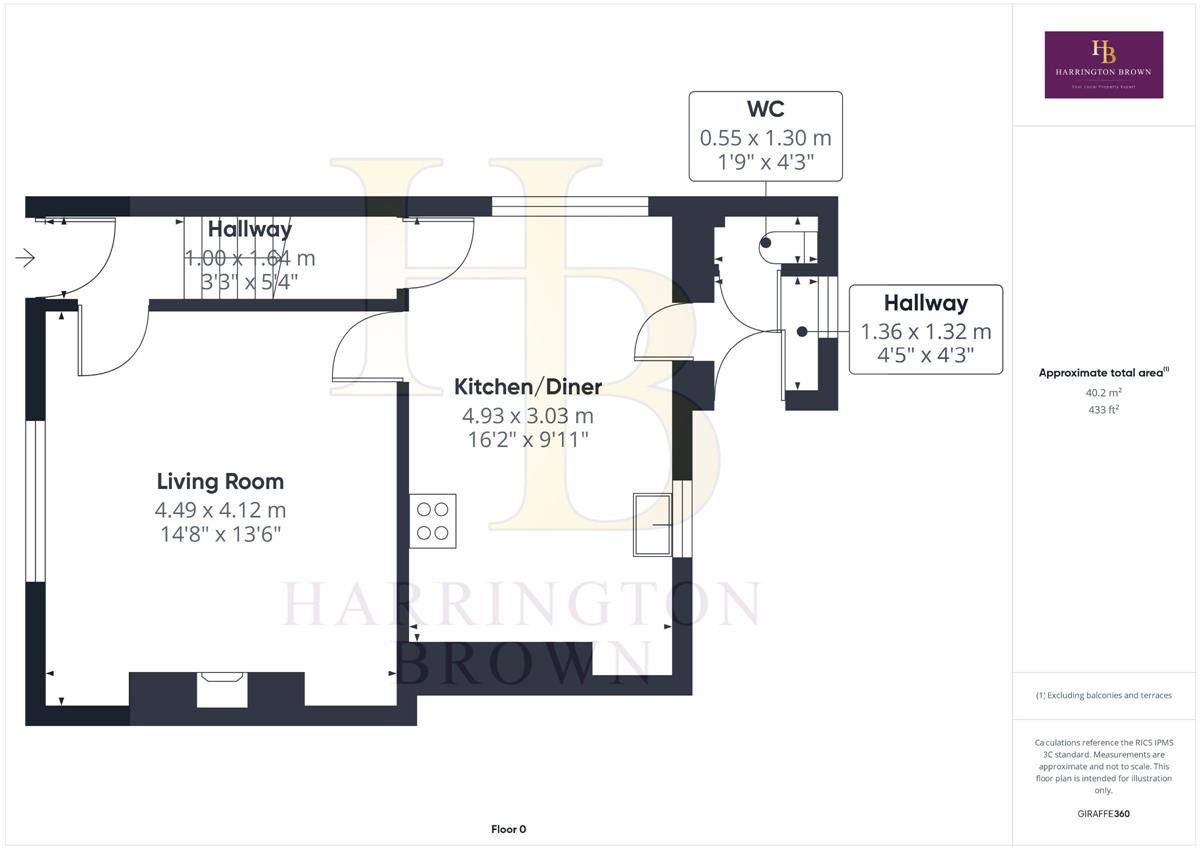 Living room w: 4.49m x l: 4.12m (w: 14' 9" x l: 13' 6")