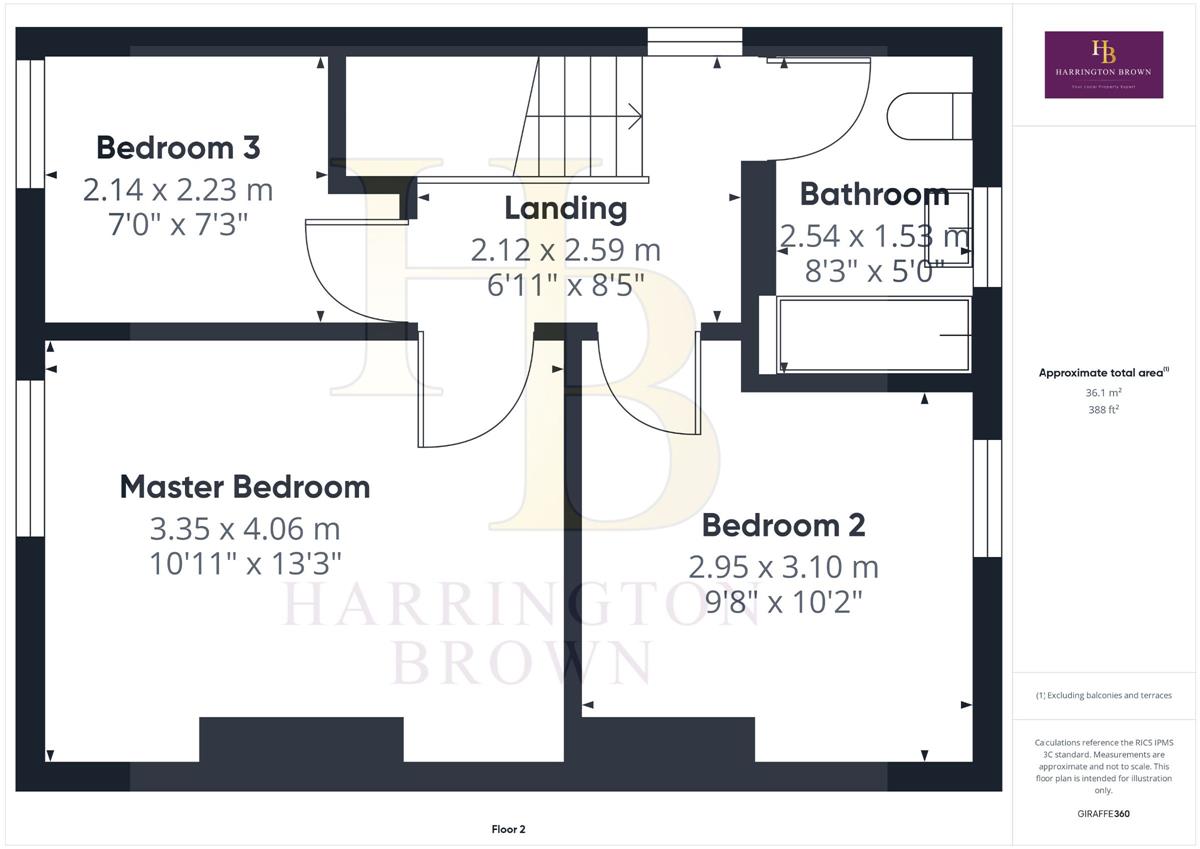 Landing w: 2.12m x l: 2.59m (w: 6' 11" x l: 8' 6")
