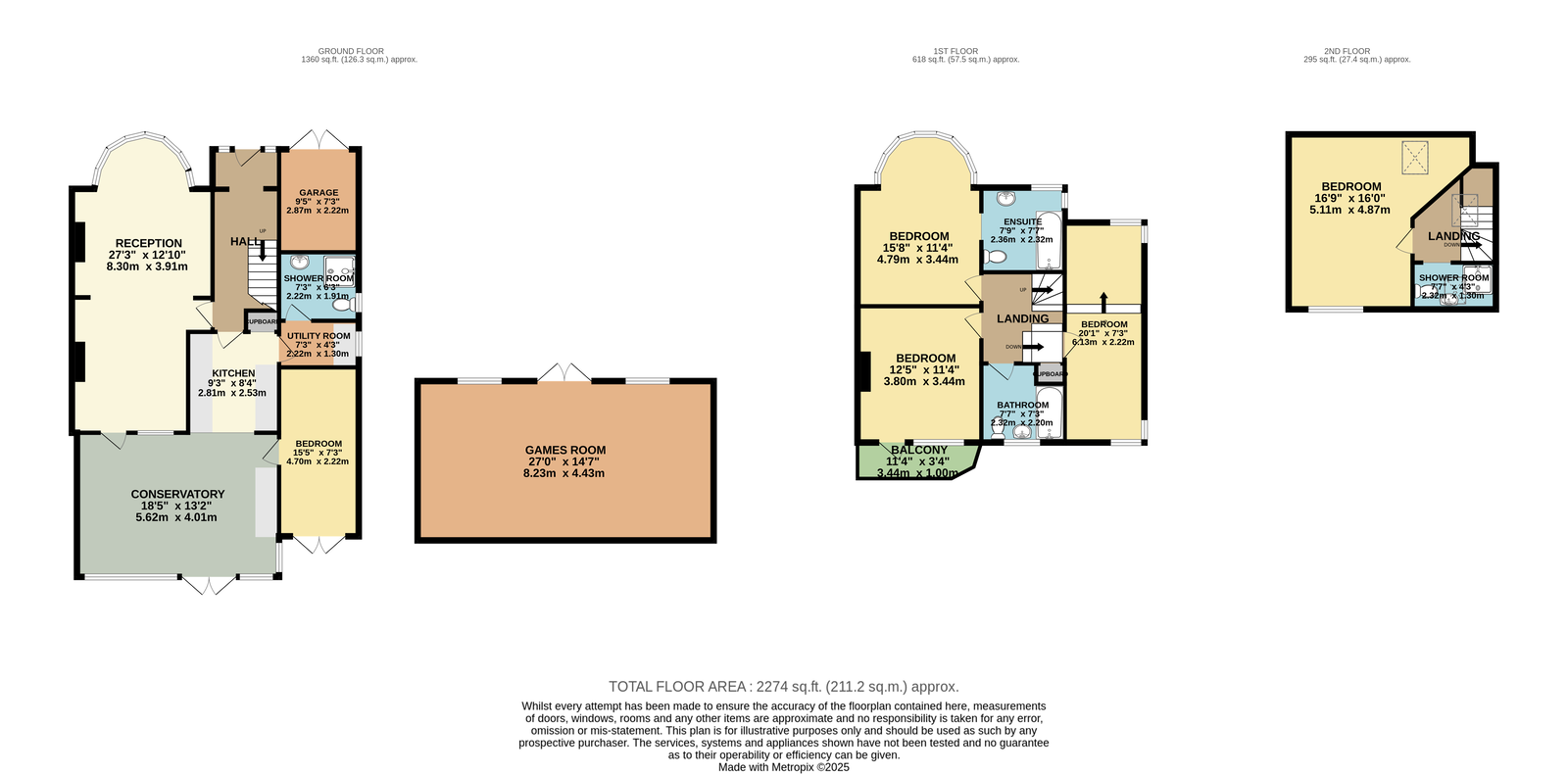 Externally, the property has an integral garage with own driveway, well maintained south facing rear garden with a 27' x 14'7 detached games room.