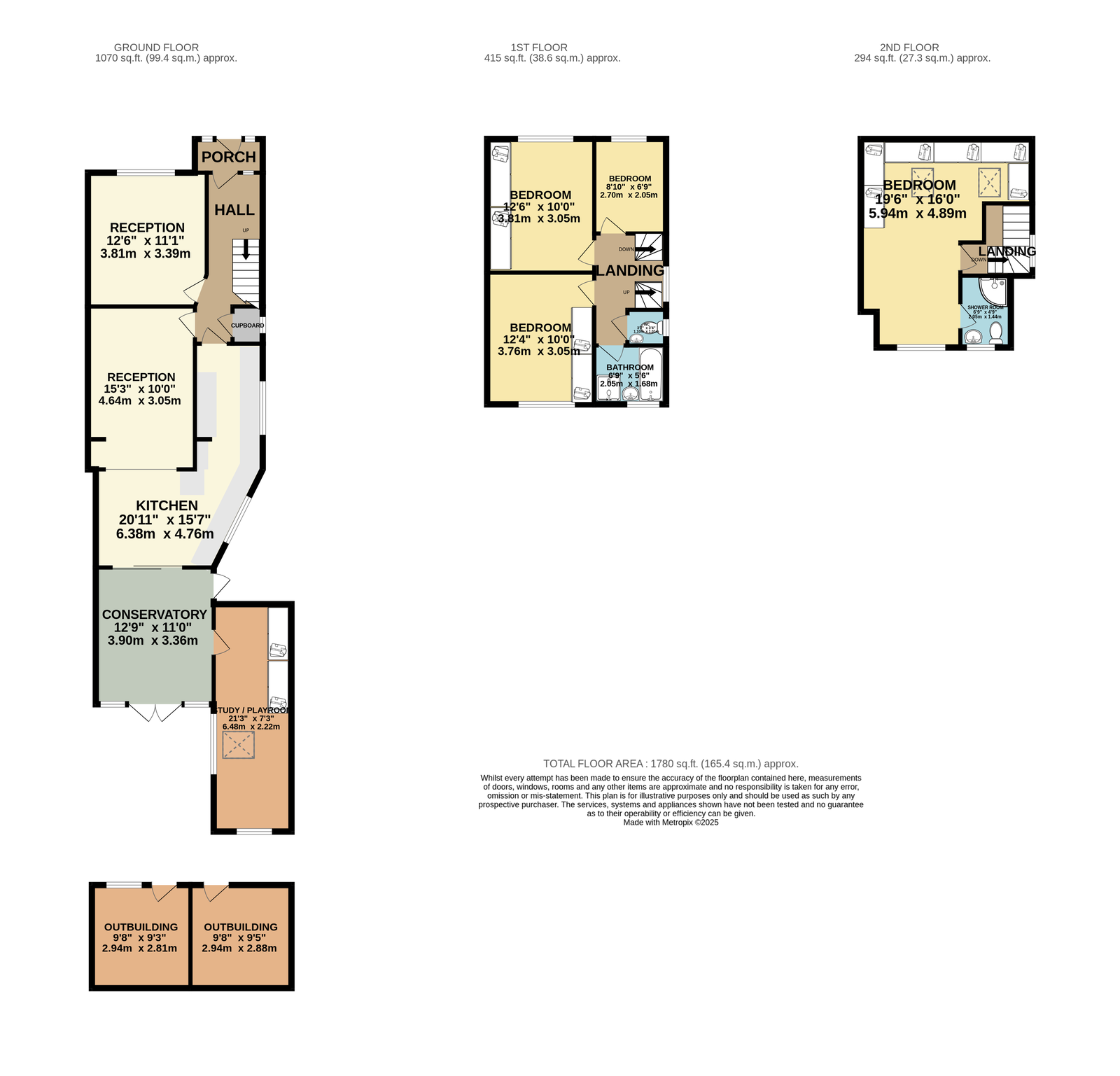 A CHAIN FREE and recently redecorated and carpeted, extended four bedroom, two bathroom, semi-detached house with two reception rooms plus kitchen / dining room, conservatory and study or playroom. The first floor has three bedrooms, bathroom with separate wc, and on the top floor is a 19' x 16' master bedroom with fitted wardrobes and ensuite shower room / wc. Externally there is off street parking to front and at the rear of the garden are two storage outbuildings.