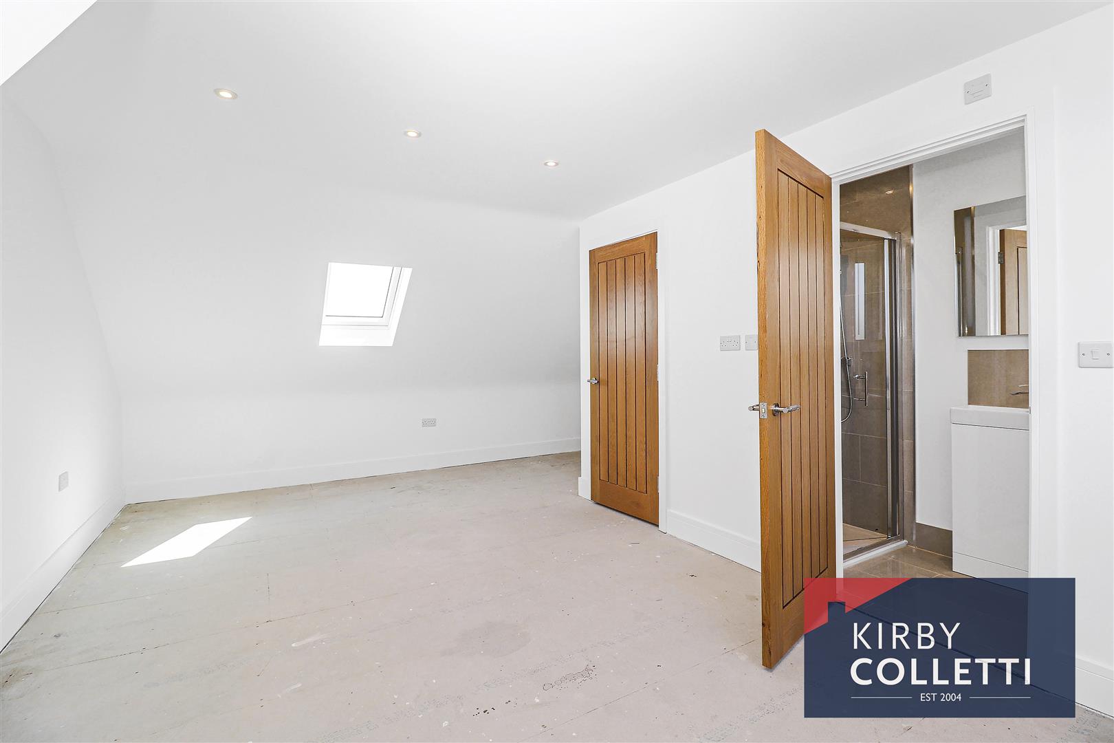 Bedroom One - 5.64m'' max x 5.44m' max (18'6'' max x 17'10' max) - Narrowing to 10'8''. Rear aspect uPVC double glazed window. Front aspect Velux window. Radiator. Recessed spotlights. Door to: