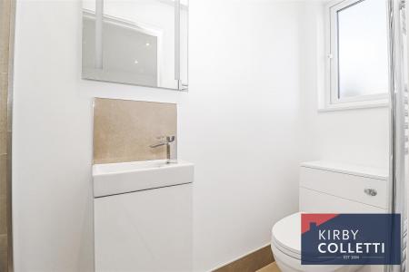 Cloakroom - 1.85m'' x 0.86m'' (6'1'' x 2'10'') - White suite comprising low level W.C. with concealed cistern. Wash hand basin. Heated towel rail. Extractor fan. Recessed spotlights.