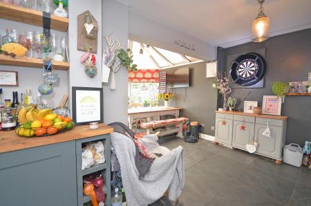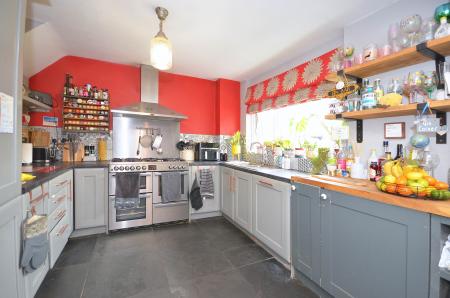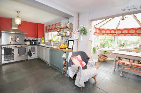 - Sociable open-plan kitchen/dining room with Shaker-inspired cabinets