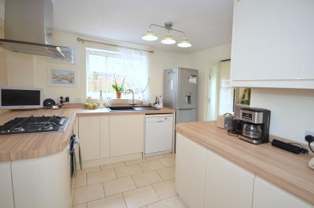 - Sociable open-plan kitchen/diner with cream gloss kitchen units