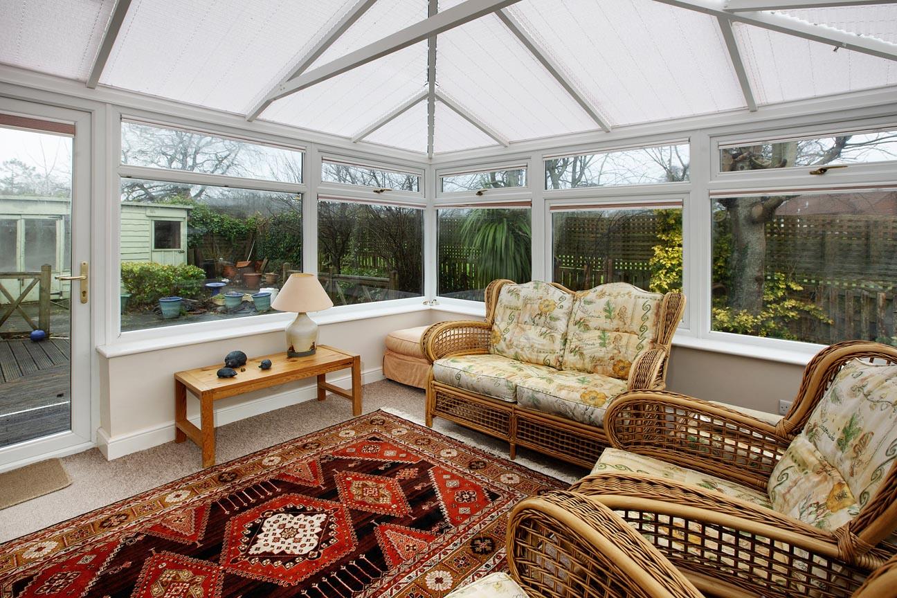 CONSERVATORY: A light-filled addition overlooking the rear garden, ideal as a garden room, reading space or informal sitting area with direct access outside.