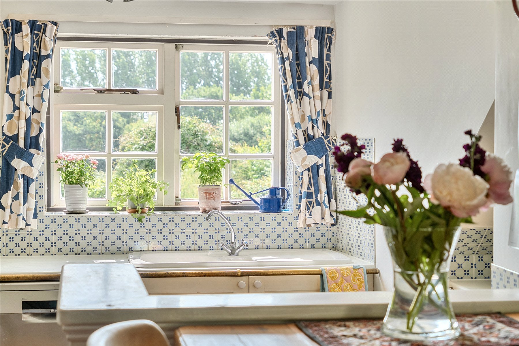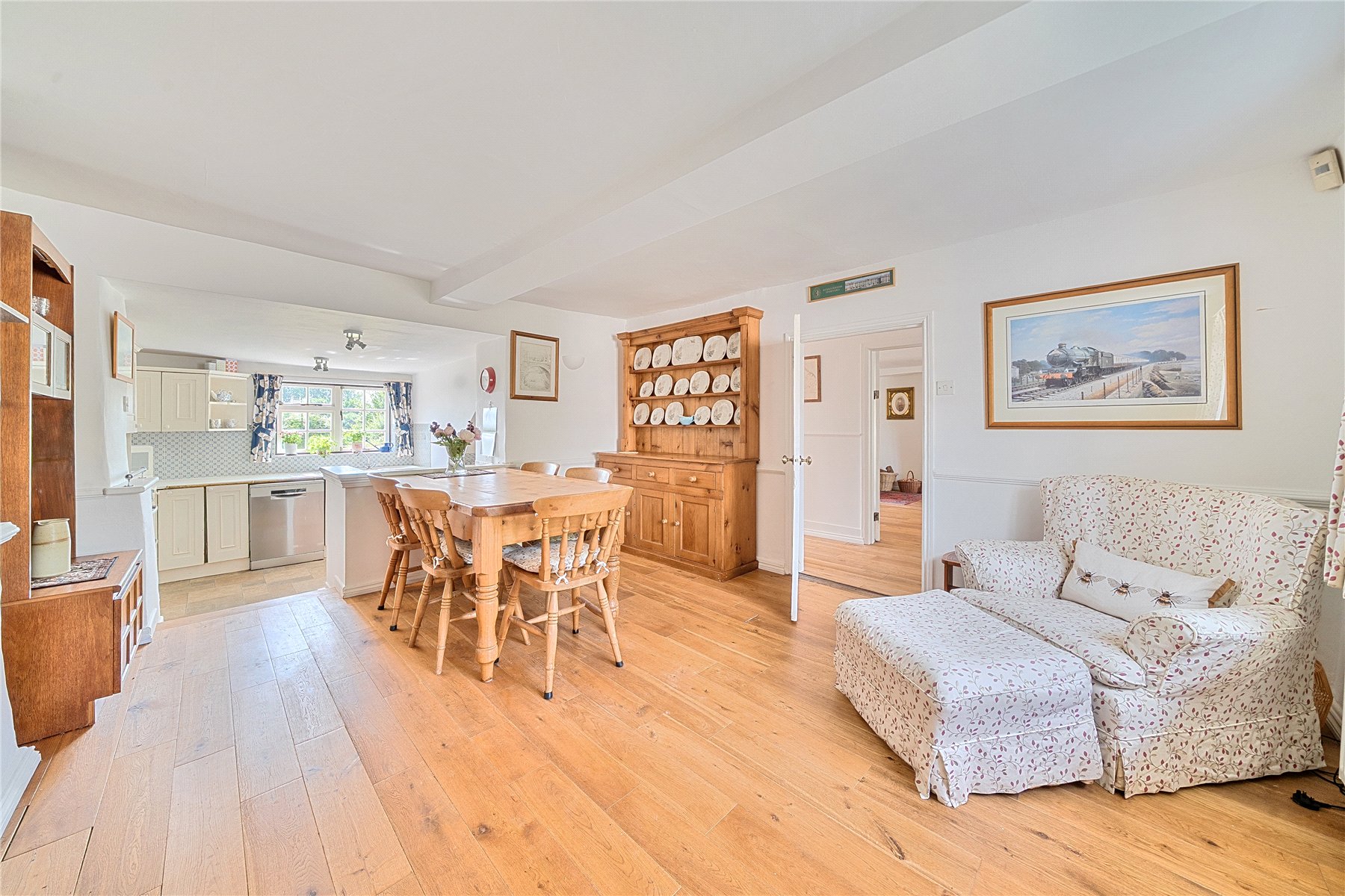 The kitchen is both practical and charming, offering ample cupboard space, traditional cabinetry, and opens into a room suitable for both formal and informal dining. It's perfectly placed at the heart of the home with easy access to both living areas and boot room, making it ideal for modern family life.