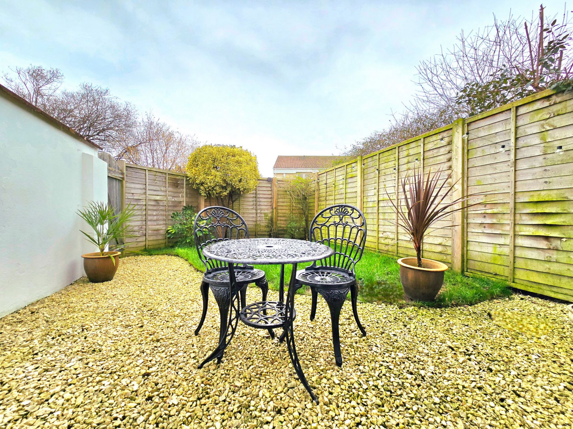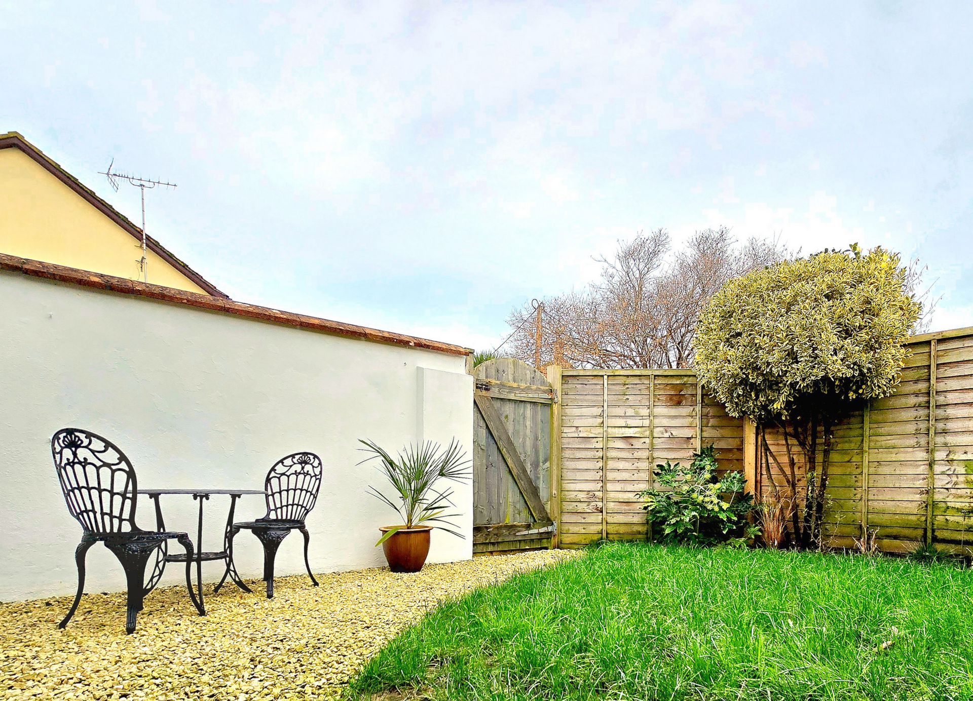 OUTSIDE: To the front of the property is a level lawned garden and a slate border for potted plants. The enclosed rear garden is mostly laid to lawn with ornamental chippings leading from the patio doors to the pedestrian gate allowing access to the shared drive and parking area.