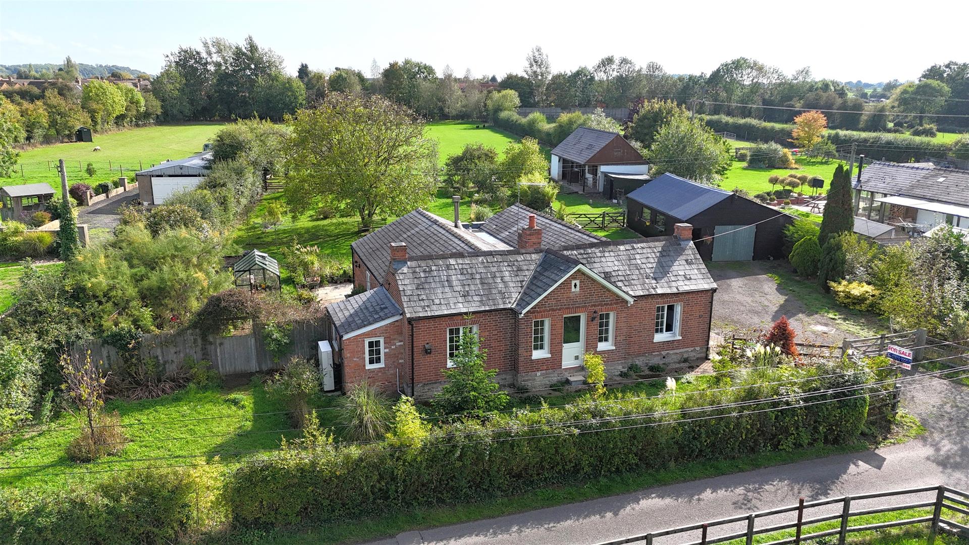 A RARELY AVAILABLE THREE DOUBLE BEDROOM DETACHED GRADE II LISTED CHARTIST BUNGALOW offering GOOD SIZED ACCOMMODATION with NEW AIR SOURCE HEAT PUMP, LOVELY LEVEL GARDENS AND LAND, SUBSTANTIAL RANGE OF OUTBUILDINGS with LARGE GARAGE / WORKSHOP, DOUBLE STABLE AND TACK ROOM (WITH FULL PLANNING PERMISSION TO CONVERT INTO AN ANNEXE, IF REQUIRED), the whole plot APPROACHING TWO ACRES.