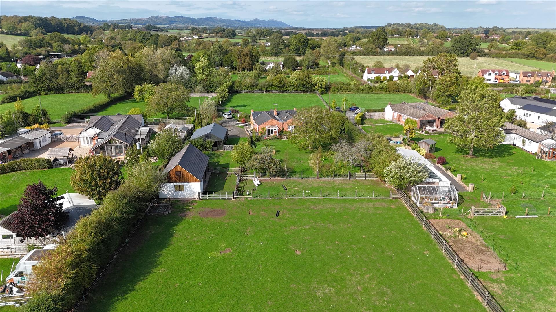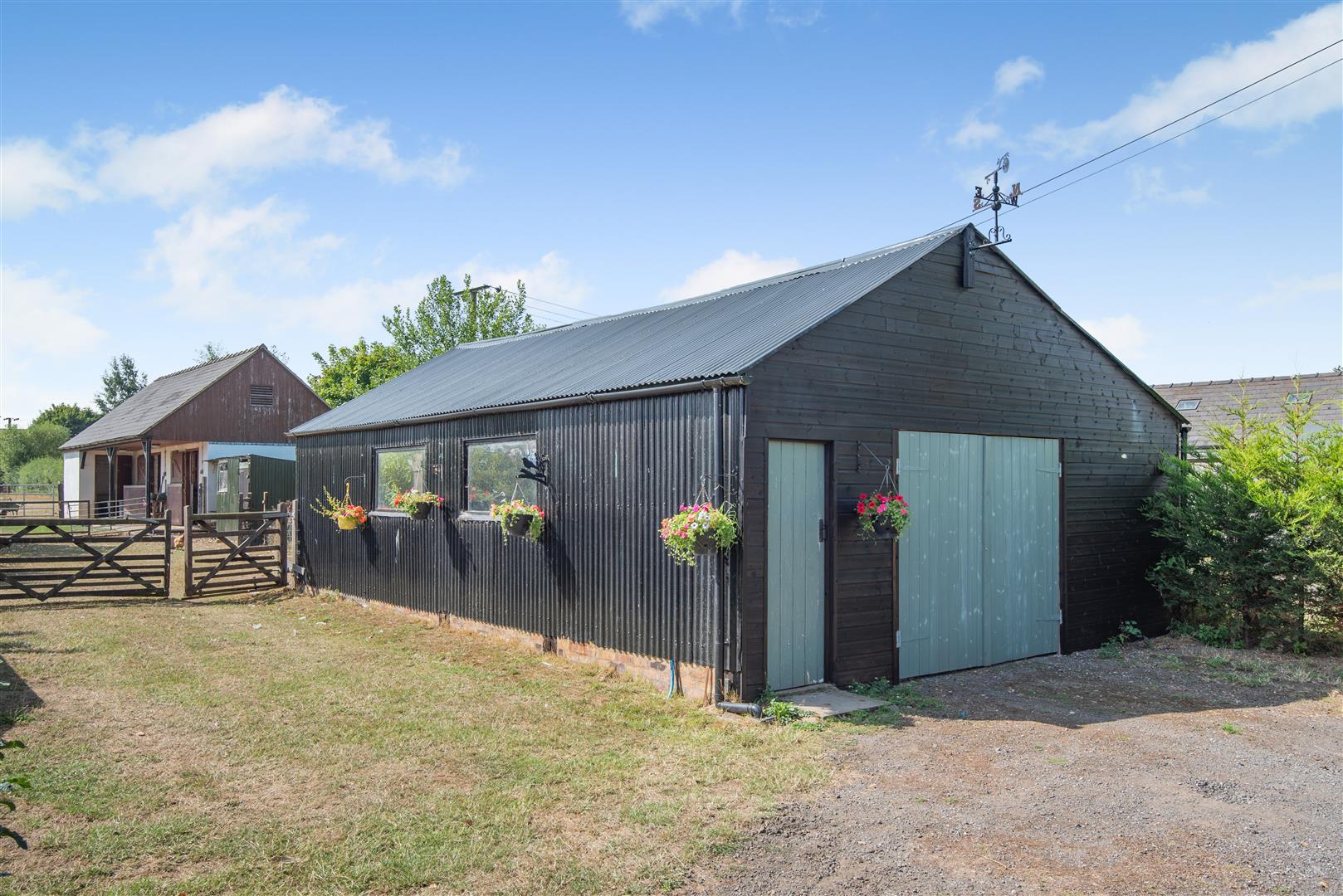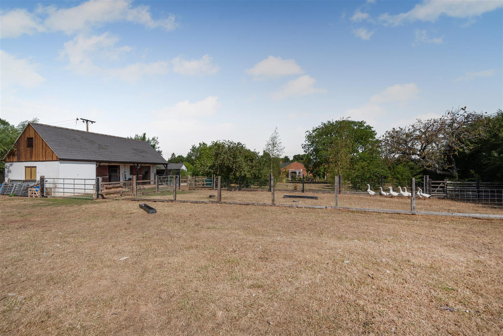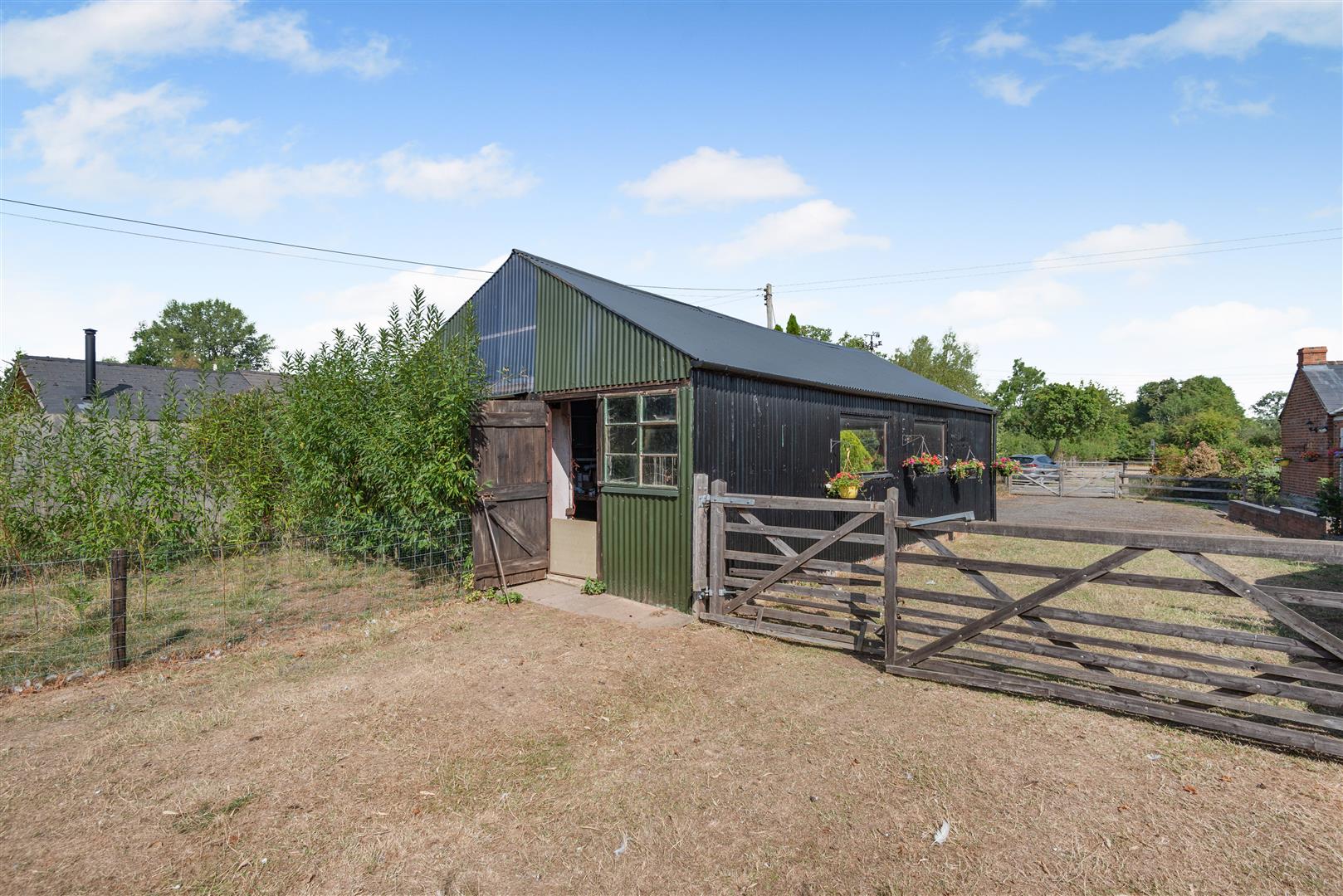 To the front of the property, there is a garden area with fencing surround. Access to either side leads to the rear of the property, where there is a large lawned area, interspersed with flower beds and borders, paved patio area, outside light, outside tap, greenhouse, hedging and fencing surround. A further five bar gate, from the driveway, leads through to the main area of land, separated into two paddocks, fencing and natural hedge boundary, lovely and private with a range of outbuildings to include: