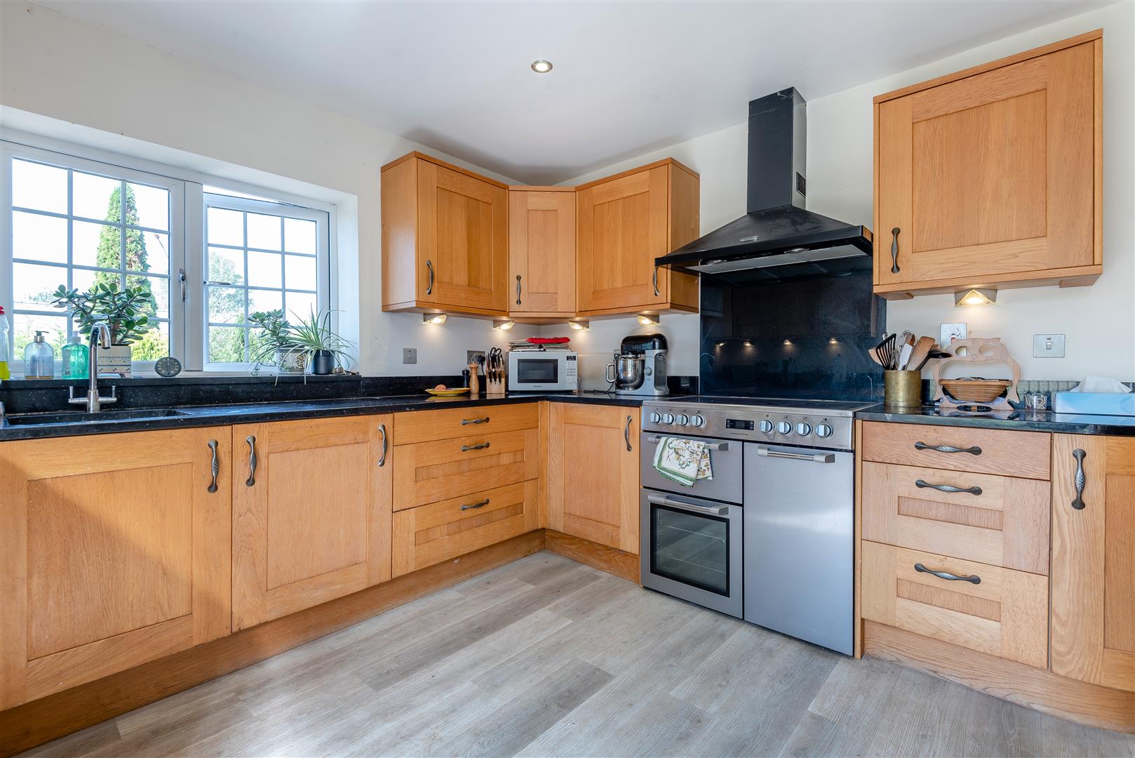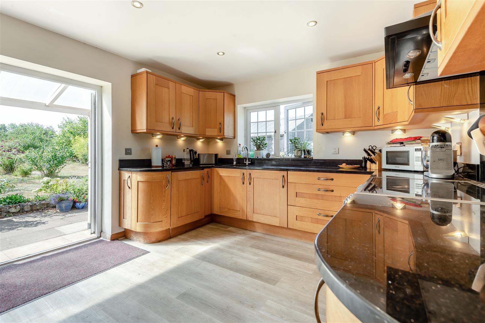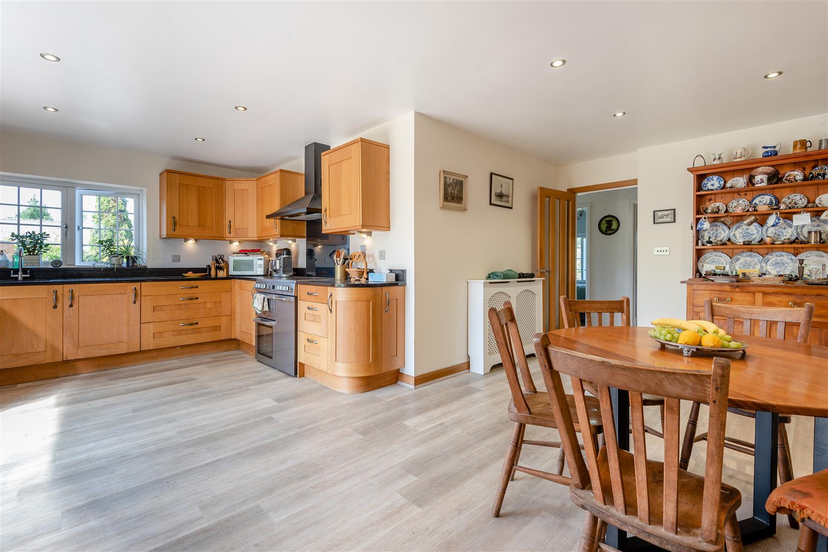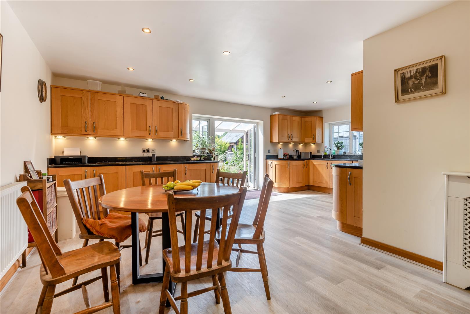 Kitchen / Dining / Family Room - 6.25m x 5.94m max (l shaped) (20'6 x 19'6 max (l s - Single drainer sink unit with mixer tap, cupboard under, range of base and wall mounted units, integrated dishwasher, fridge, cooking range with hot plates and ovens below, cooker hood above, granite worktops, two double radiators, spotlighting, side aspect window, fully glazed French doors through to the rear gardens and land with a lovely outlook.