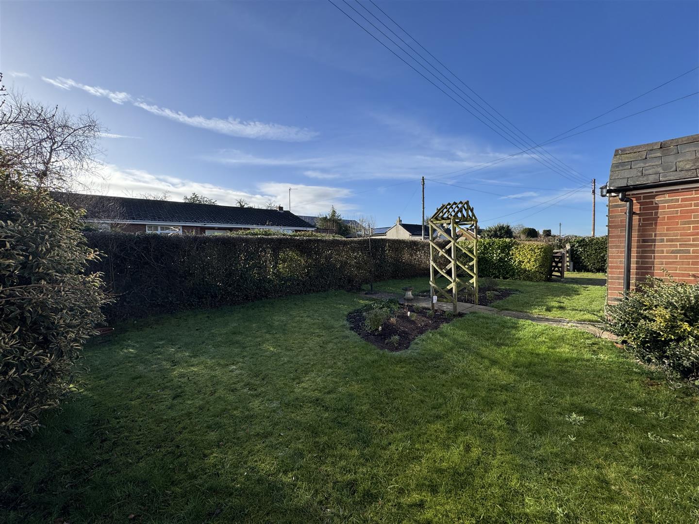 The property sits centrally within a generous plot. The front gardens are laid to lawn with planted borders and path to the front door. A pedestrian side access, to the other side of the property, leads to the rear gardens which comprises of a large patio seating area, wooden shed, outside water tap, outside power points, steps to the main garden which is laid to lawn and all enclosed by fencing. The rear gardens measure approximately 50' deep x 72' wide.