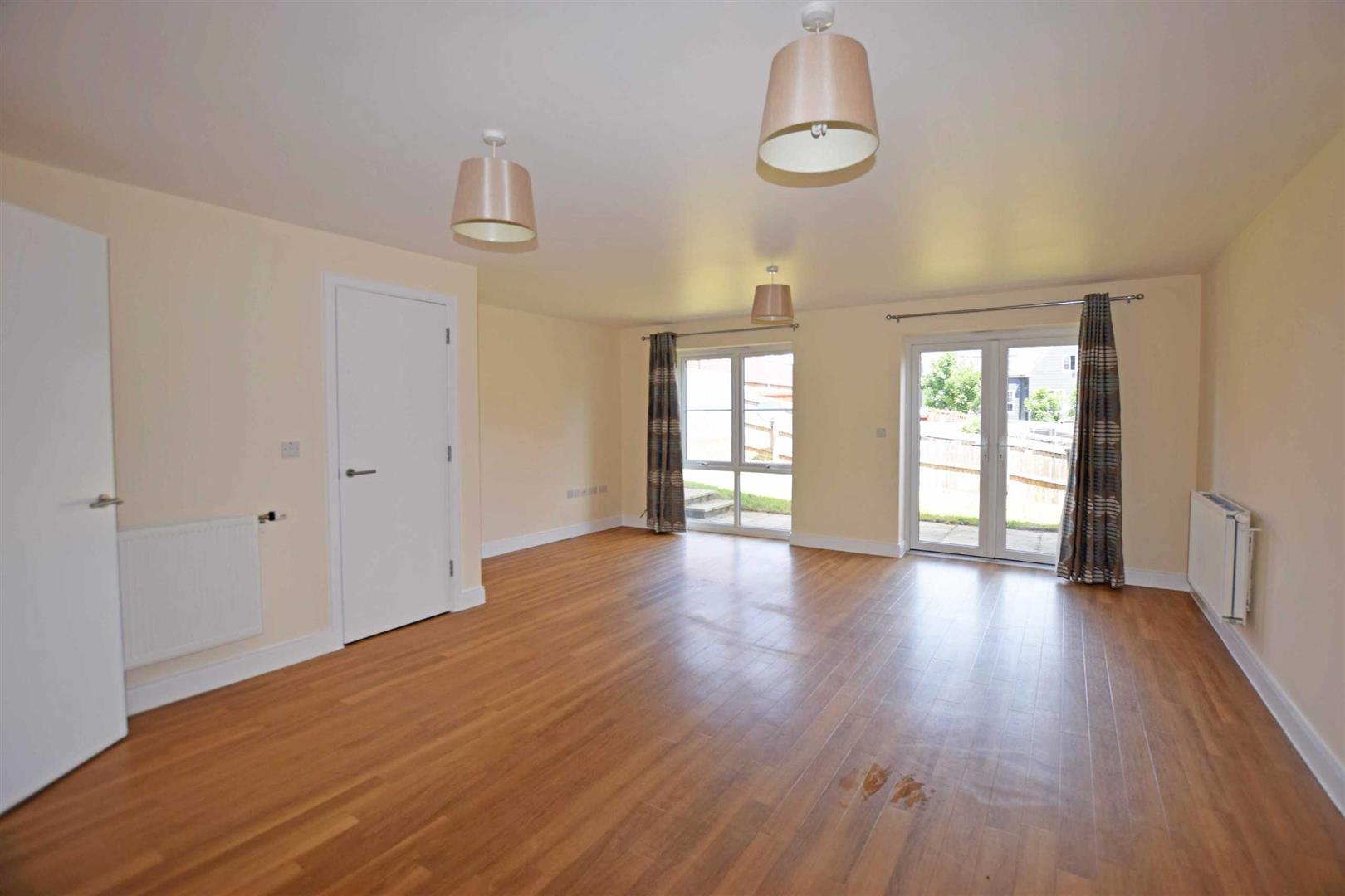 Lounge/ Dining Room - 5.64m max x 5.33m max - Double glazed French doors to garden, double glazed window, radiators, understairs cupboard.
