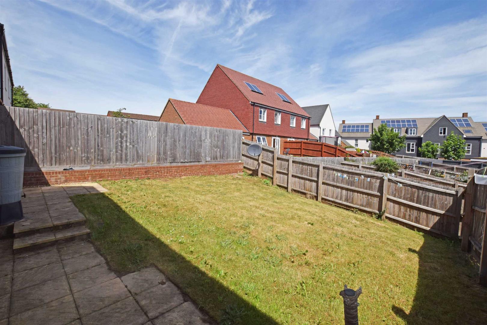Gardens - Rear, Enclosed, newly turfed lawn.