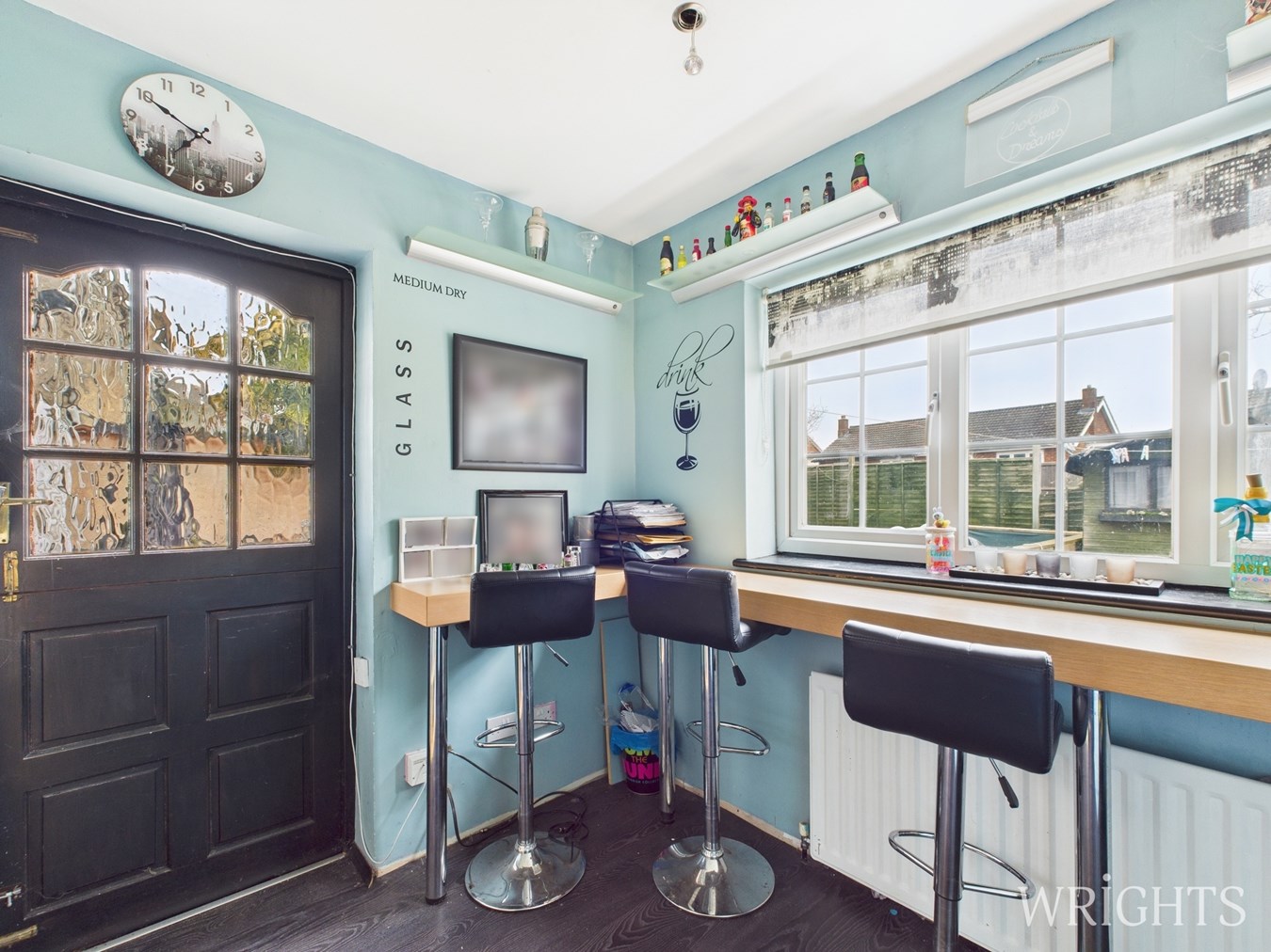 7' 3" x 9' 11" (2.21m x 3.02m) Rear aspect double glazed multi pane effect window. Bar with stool area below, fitted radiator, built in cupboard, door to side aspect.