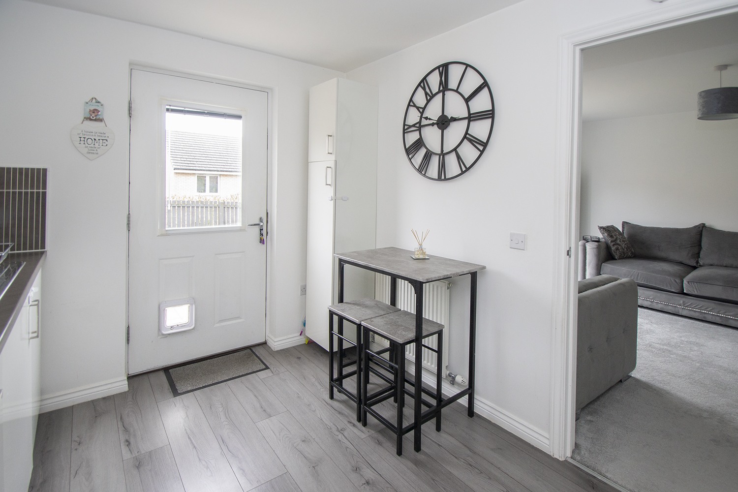 Entered via double glazed door the entrance hall gives access to the lounge, wc and staircase leading to the upper level accommodation. Crisp décor with quality flooring. Handy storage cupboard.