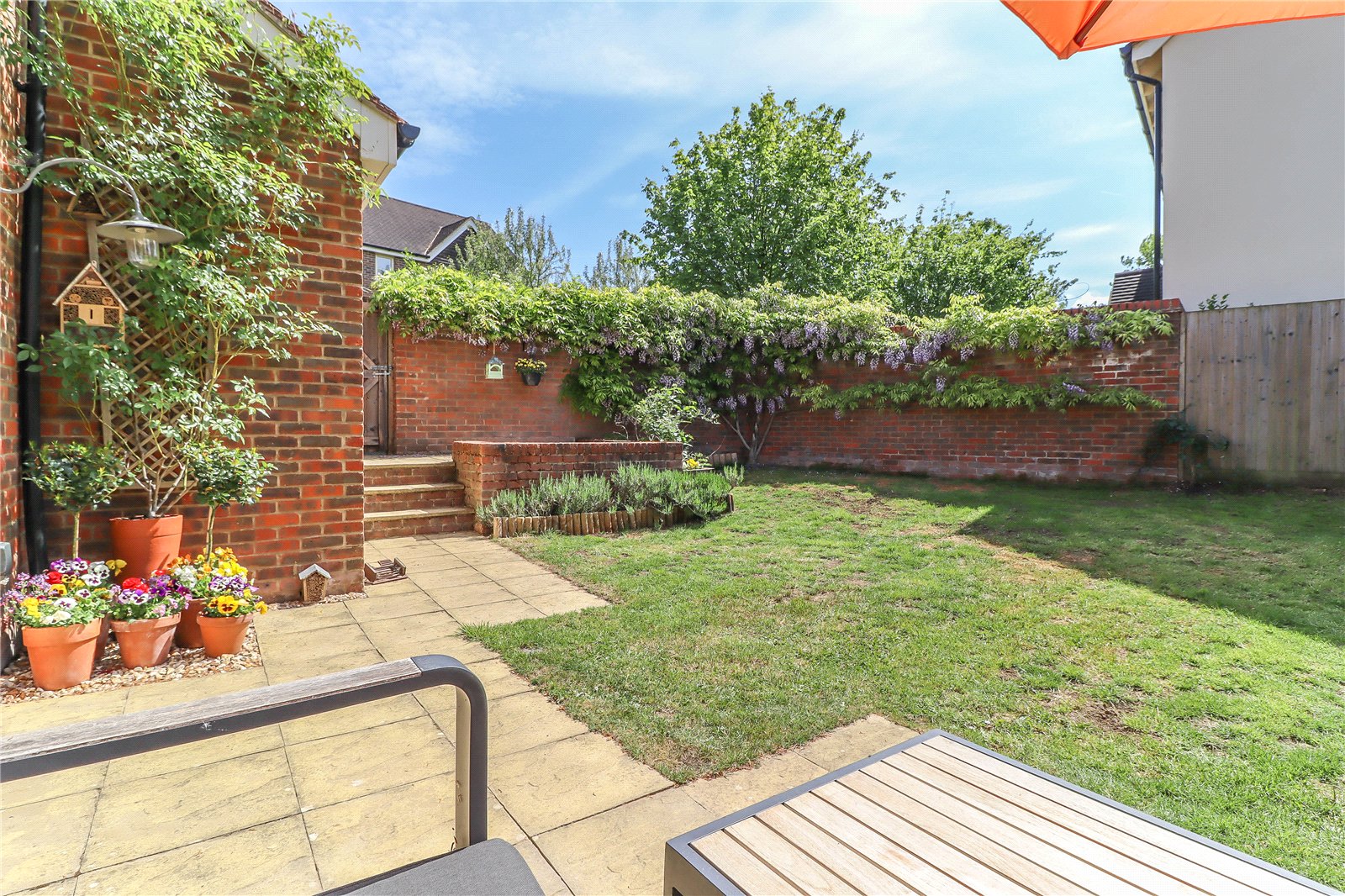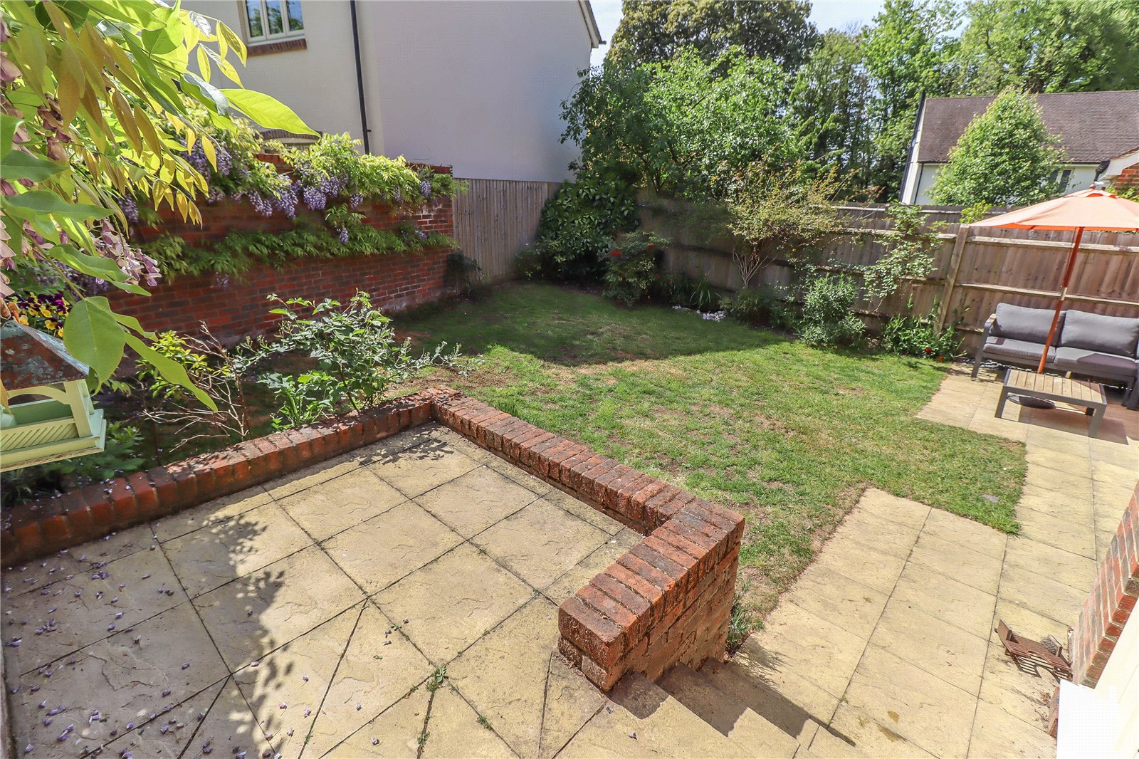 Rear Garden This enjoys the benefit of a southerly aspect. Split level paved terrace a higher area retained by brick walling with raised rose, shrub and Lavender borders. Central lawn with surrounding shrubs and roses. Small ornamental pond. The garden is screened to the side by tall feather edged fencing and from the Close by a tall curved brick wall with a fabulous central Wisteria which spans out to either side. Gate leads out onto the village Close.