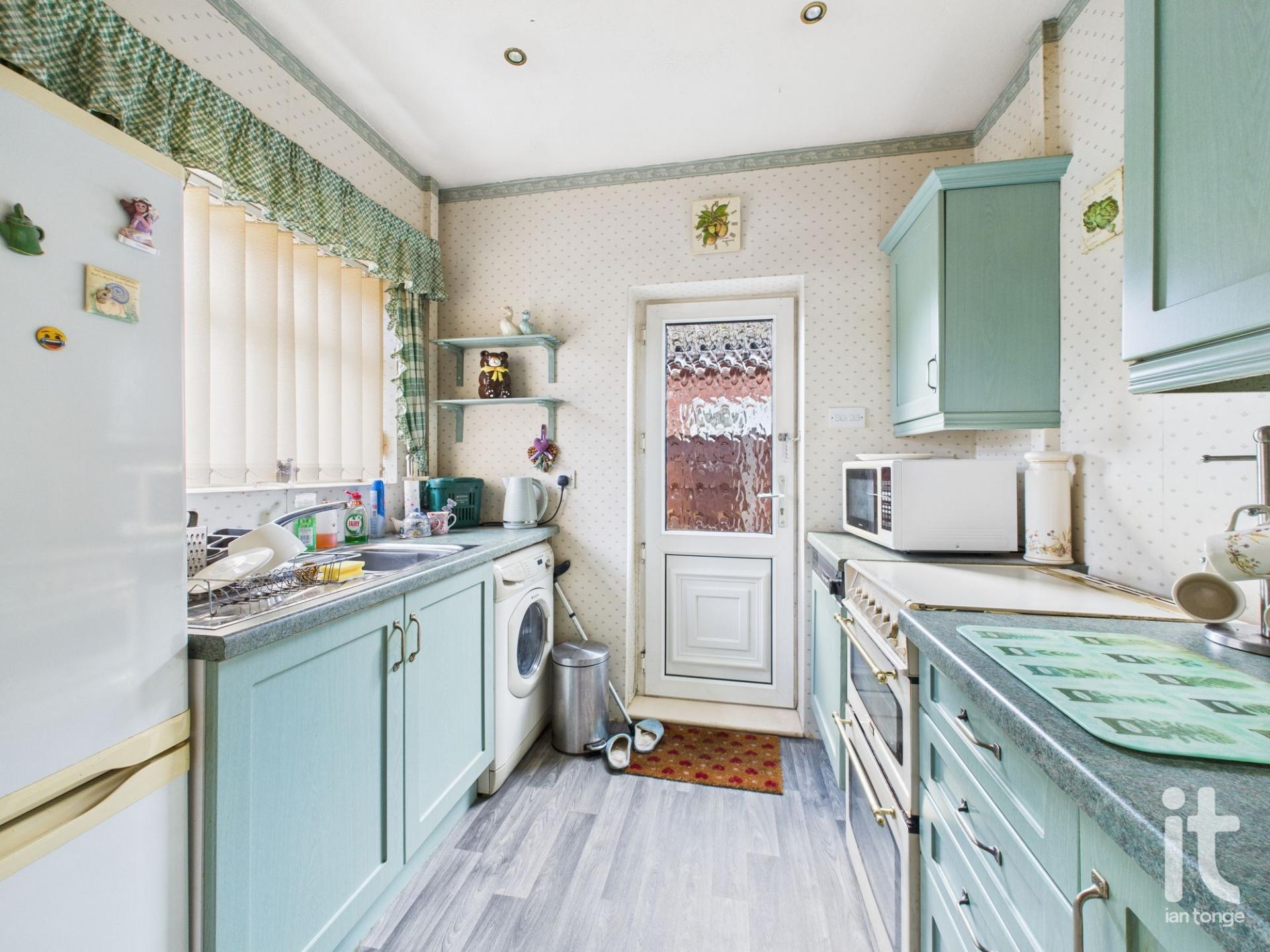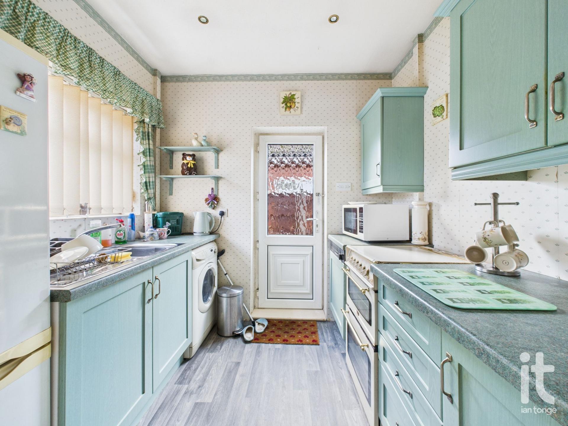 uPVC double glazed window to the front aspect, uPVC side door, fitted wall and base units, work surface with inset stainless steel drainer, plumbed for washing machine, gas cooker point, space for fridge/freezer.