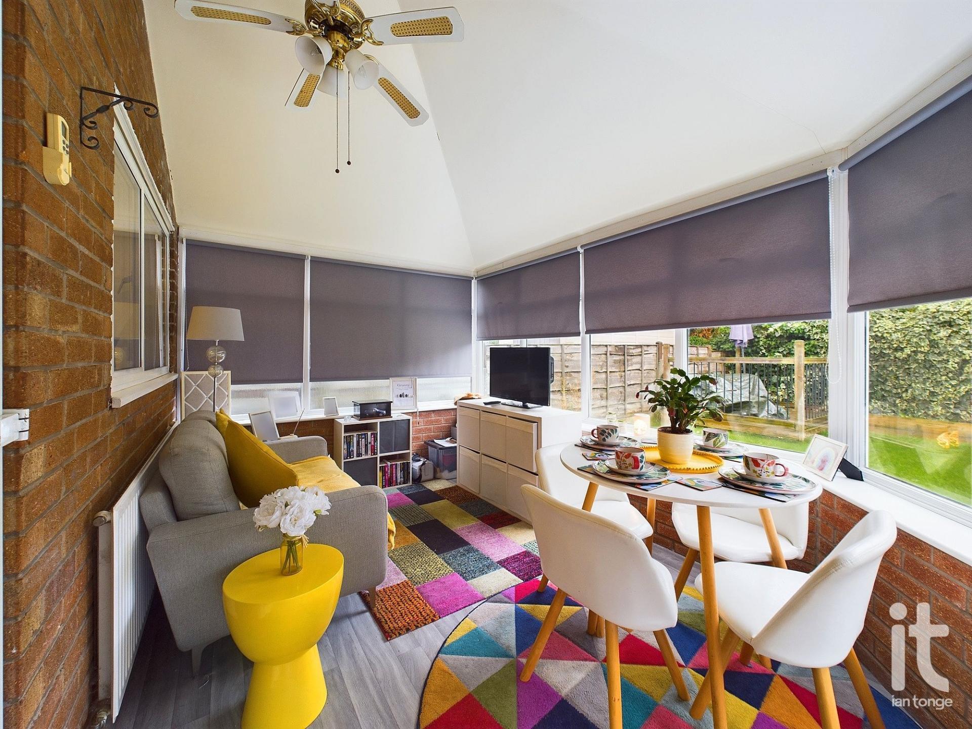 All year round sun room, uPVC double glazed windows, vinyl flooring, uPVC double glazed french doors out to the garden, ceiling fan/light and radiator.