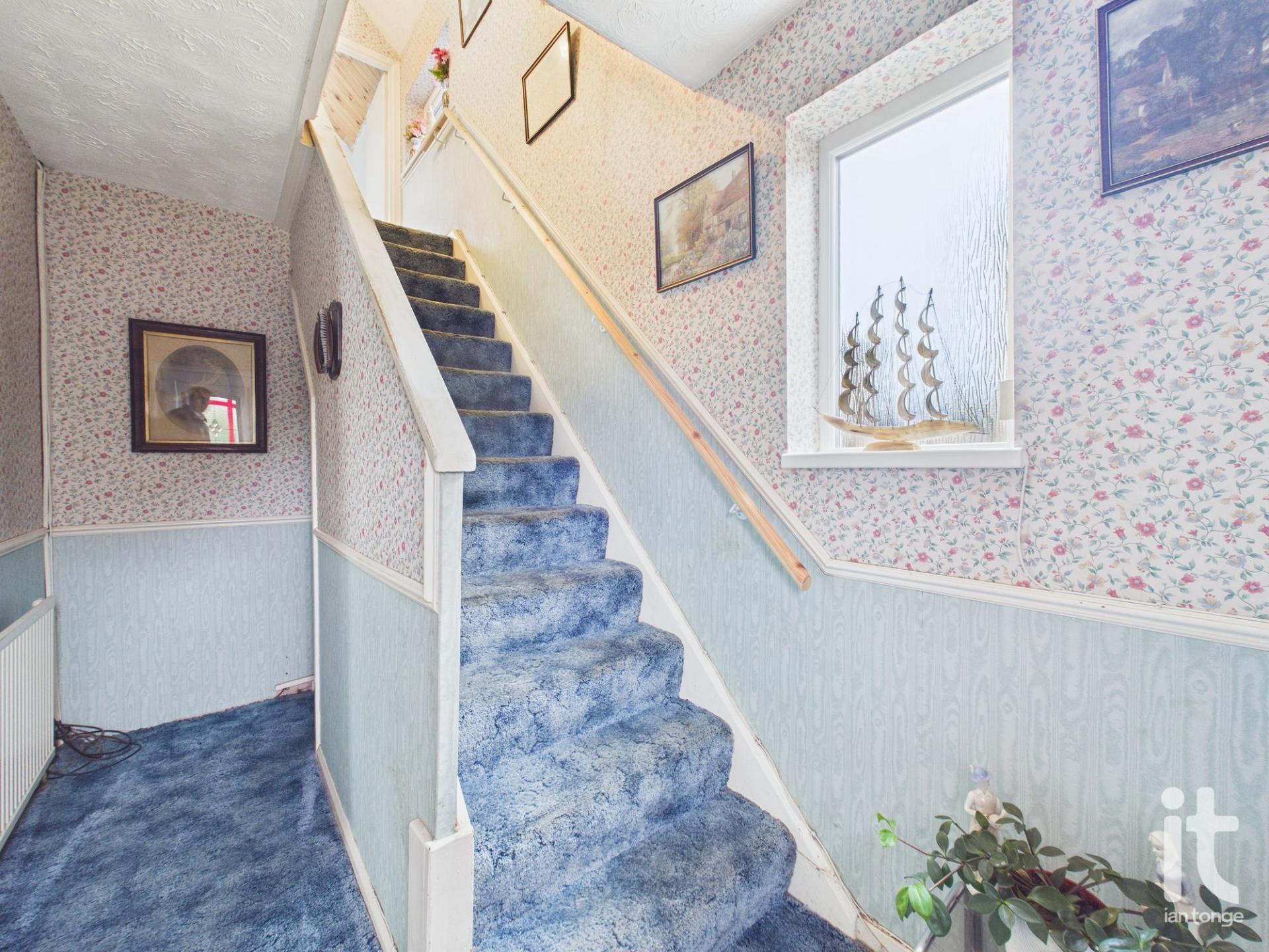 uPVC entrance door, uPVC double glazed window to the side aspect, staircase to first floor, meter cupboard, radiator, understairs storage.