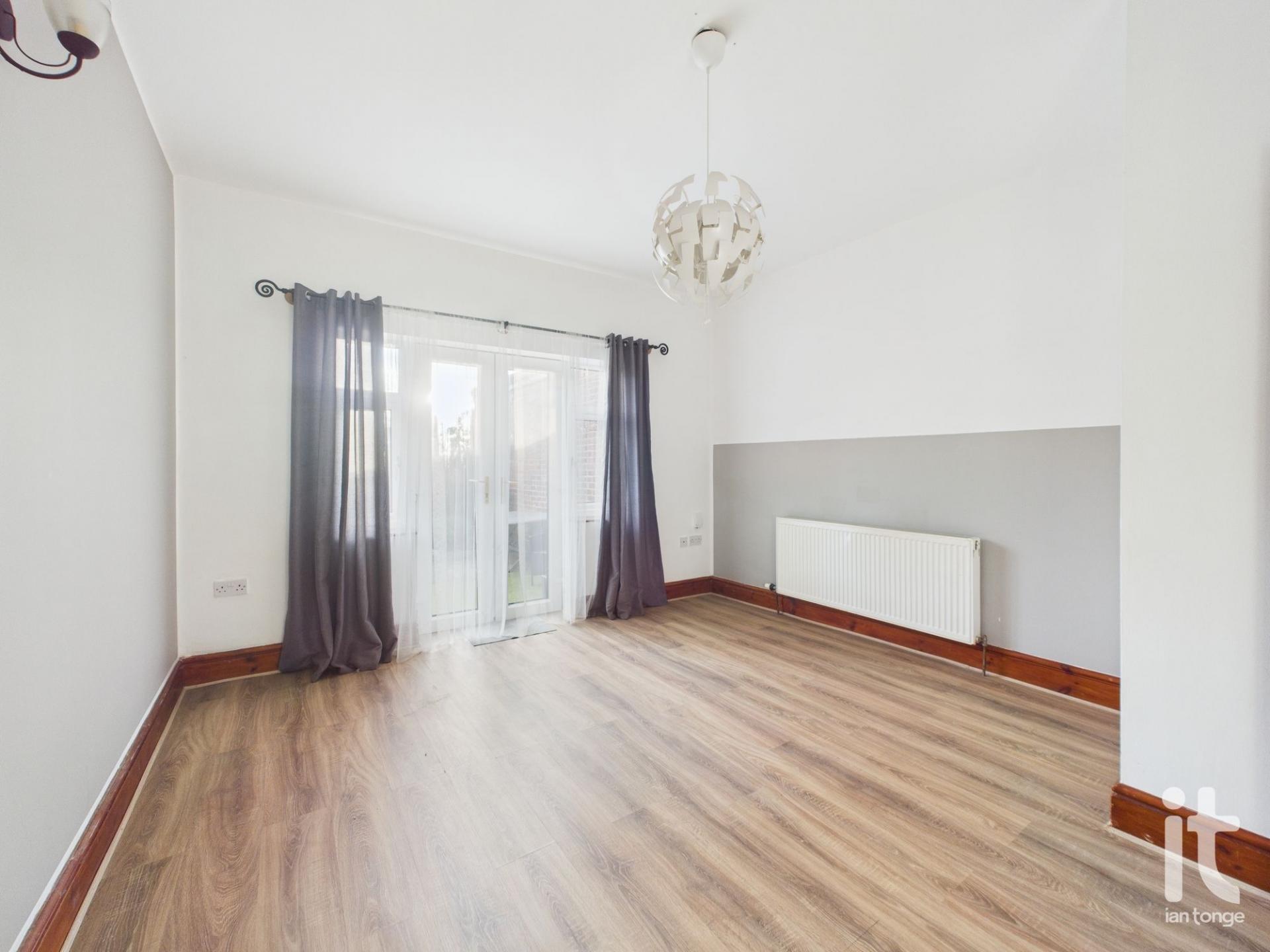 uPVC double glazed patio doors leading to the rear garden, radiator, laminate flooring, wall light point.