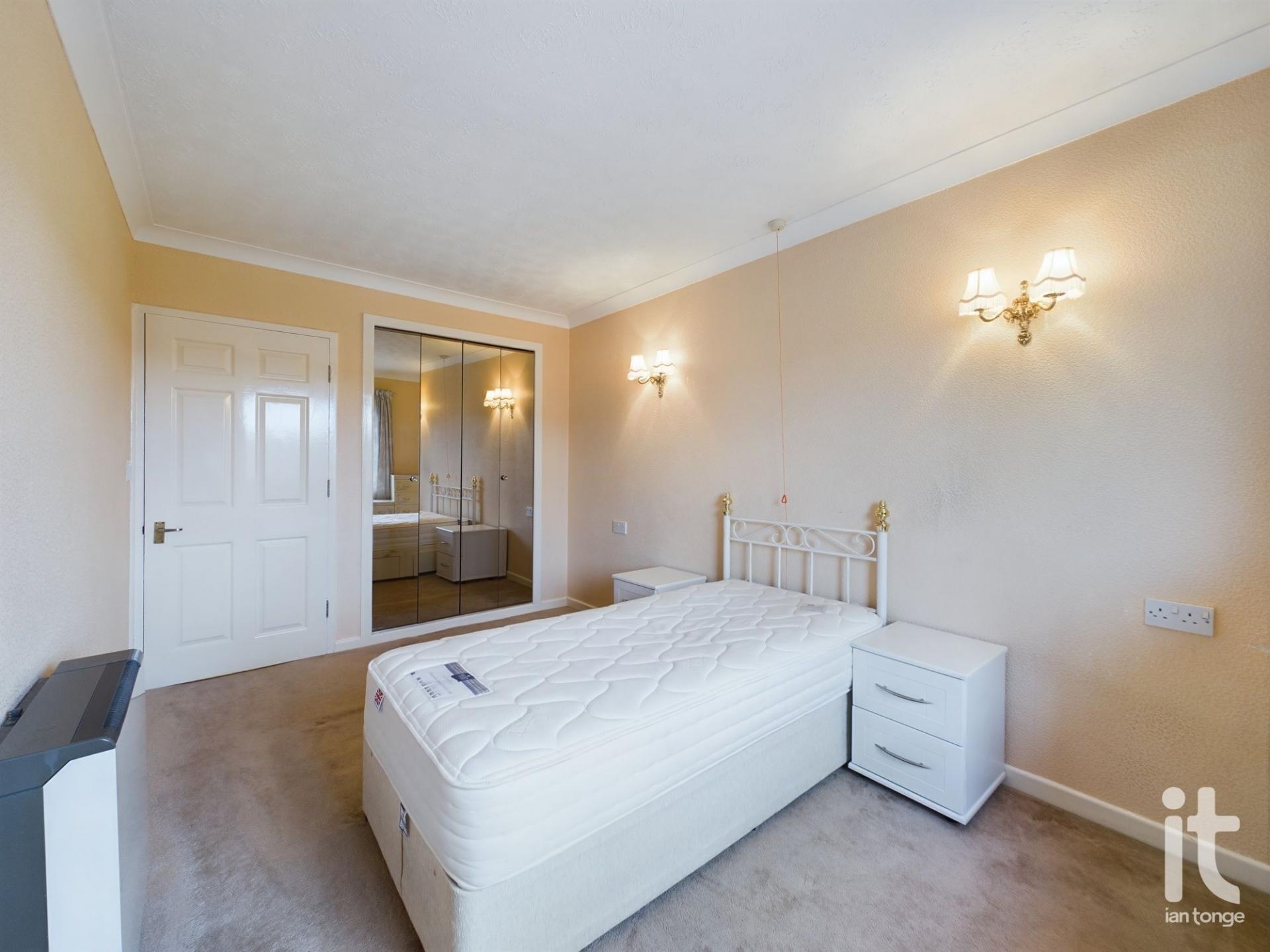 uPVC double glazed window to the front aspect, electric storage heater, built-in mirrored wardrobes with hanging space and shelving, power points, light points.