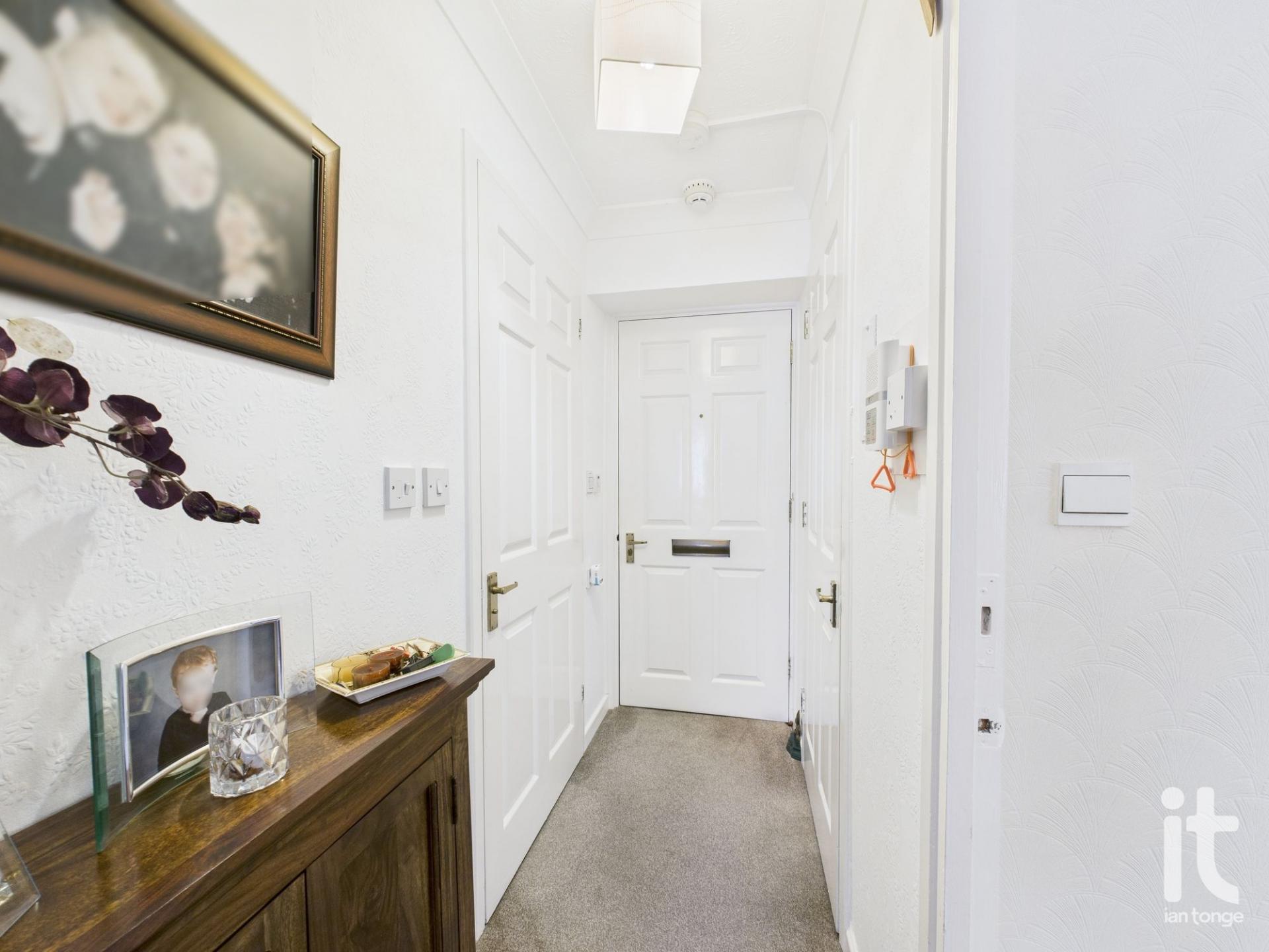 Entrance door, doors to the shower room, bedroom, lounge and storage cupboard, which houses the meters and water tank, door intercom/entry, Tynetec security system.