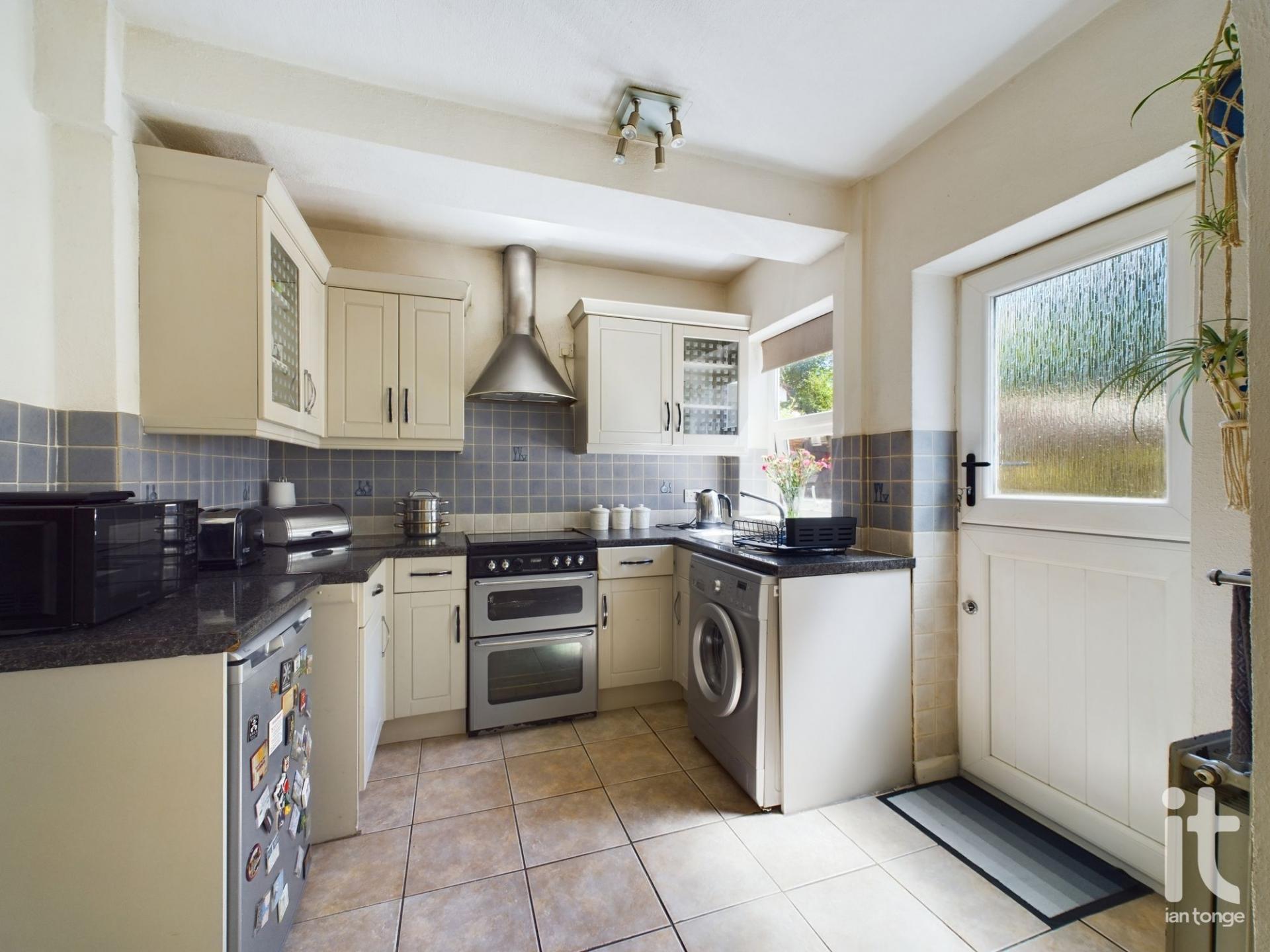 uPVC double glazed window to the rear aspect, stable door leading to the garden, range of fitted wall and base units, work surfaces with inset stainless steel drainer sink unit, gas cooker point, extractor cooker hood, plumbed for automatic washing machine, splash back tiled walls, radiator, space for appliance, power points, archway to the dining room.