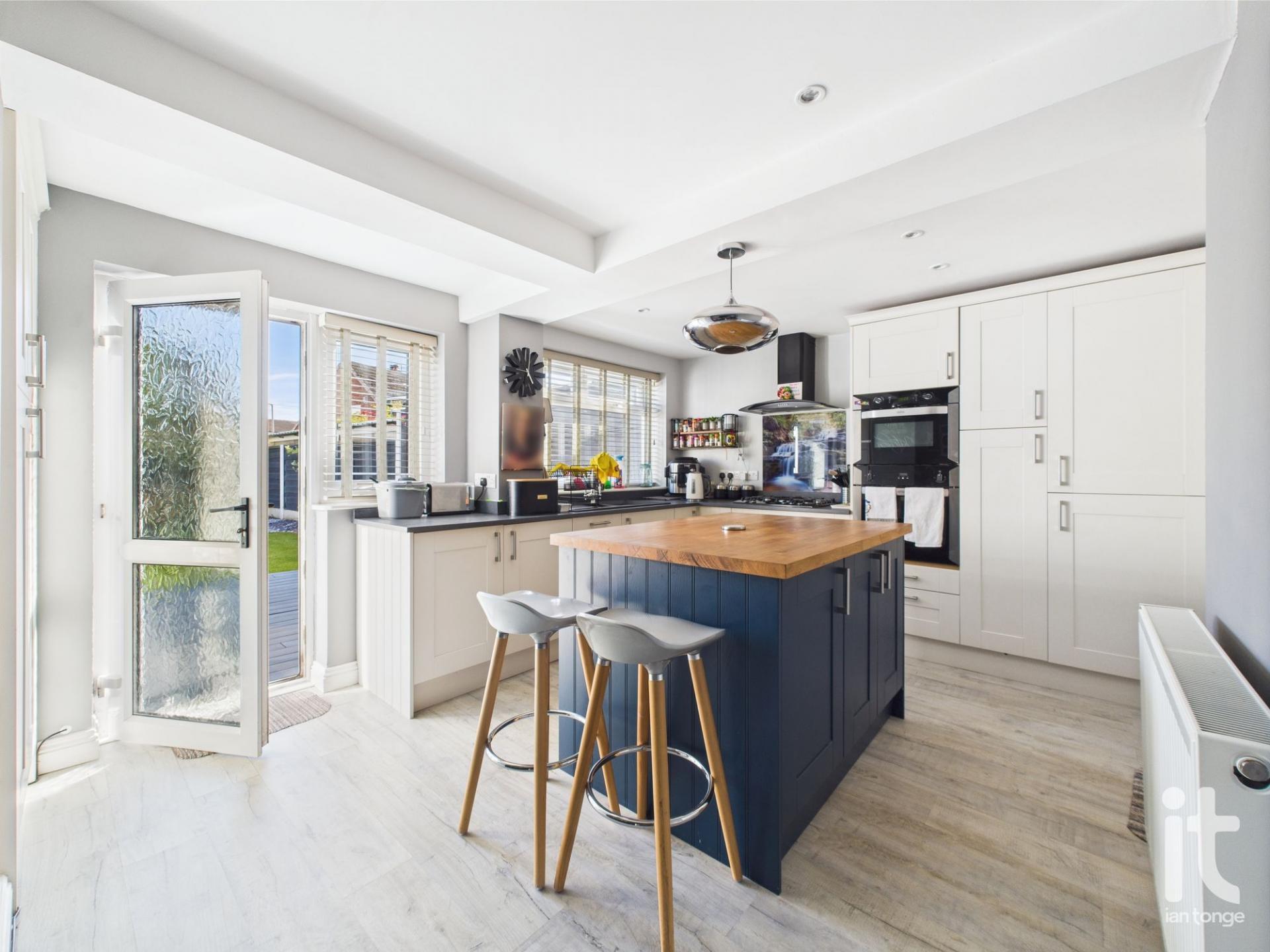 The property opens into a bright and welcoming entrance hallway, leading into two generously proportioned reception rooms, providing ample space for both formal entertaining and everyday family life. A standout feature of the home is the contemporary fitted kitchen with a central island ? a perfect space for cooking and socialising. To the rear, a spacious conservatory offers further versatility, ideal as a second lounge or playroom, and benefits from a lovely outlook onto the landscaped rear garden.