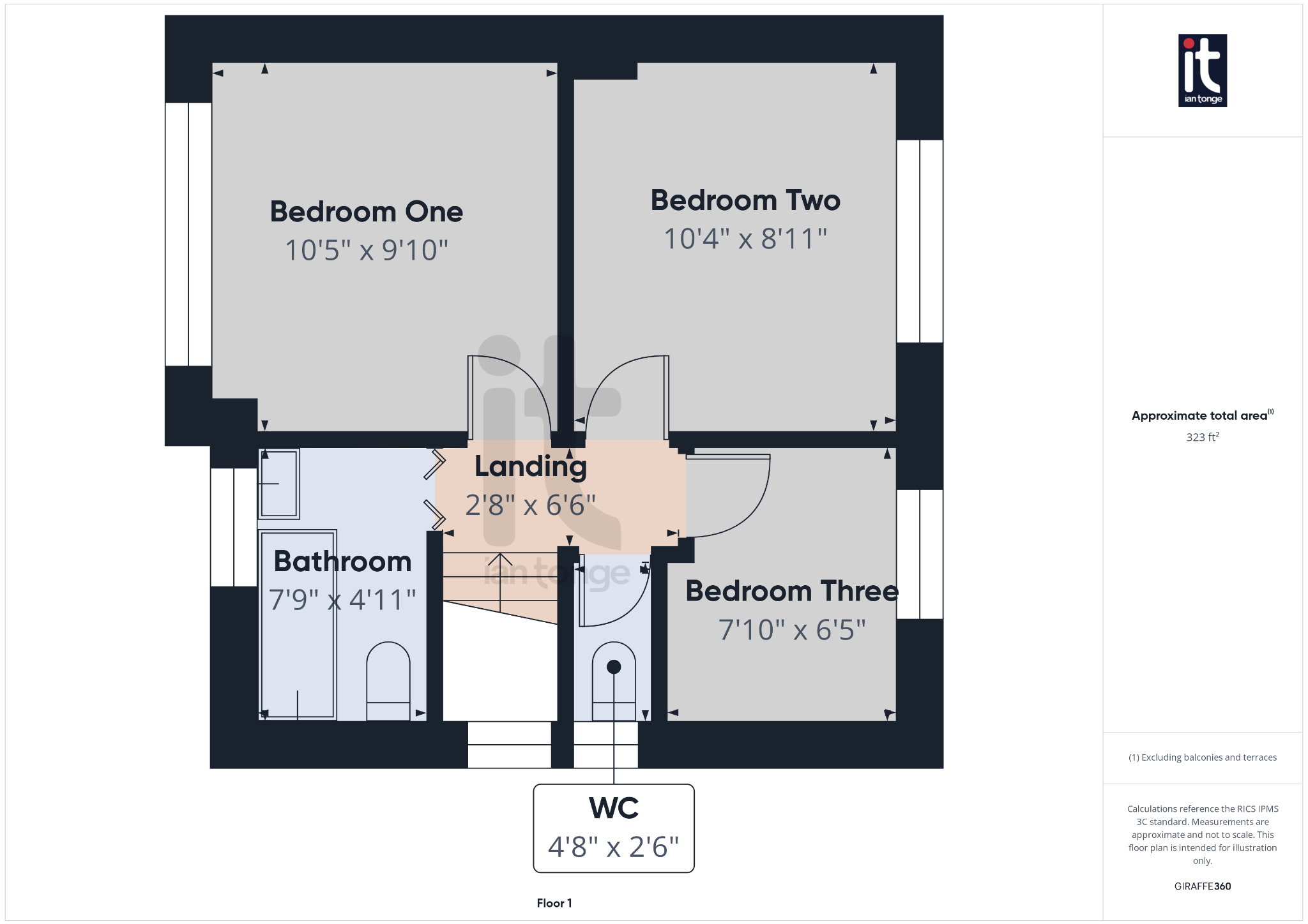 Bedroom One (Dimensions : 10'5" (3m 17cm) x 9'10" (2m 99cm))