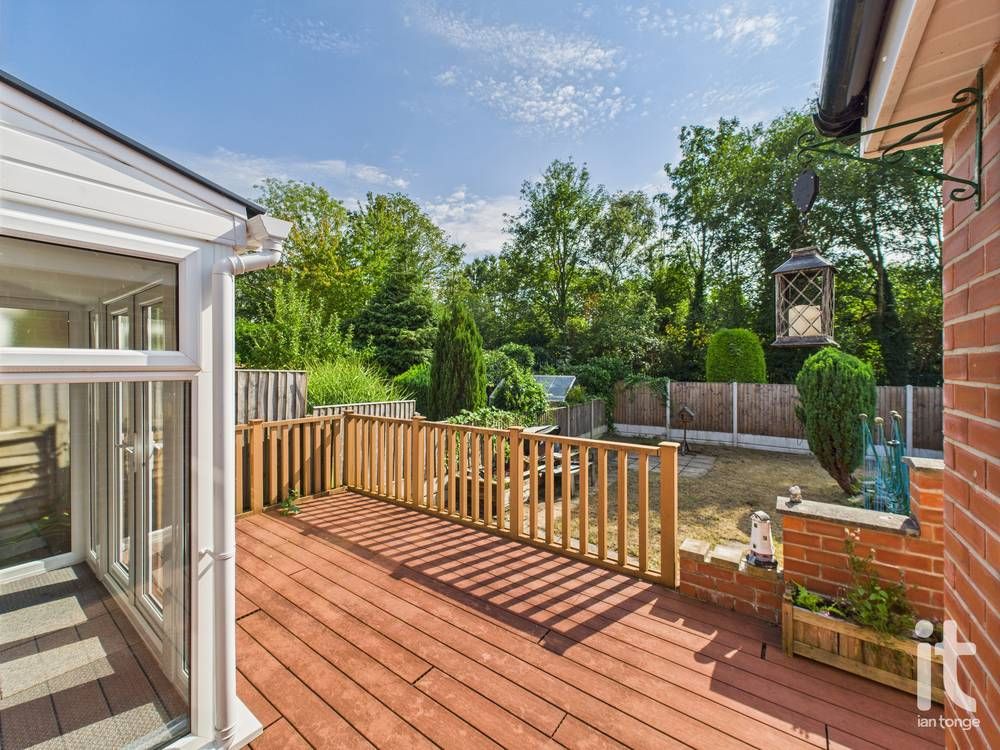 The south facing rear garden is mainly laid to lawn with a large decked area off the conservatory. Enclosed by fencing and mature planting and benefitting from not being overlooked.