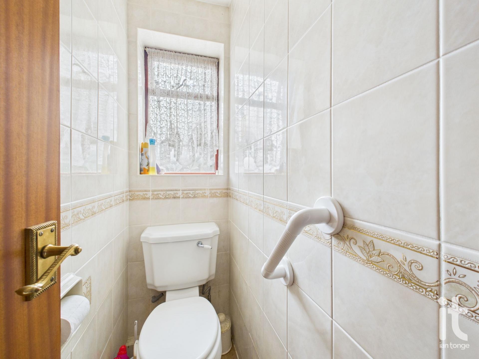 Double glazed window to the rear aspect, low level W.C., tiled walls.